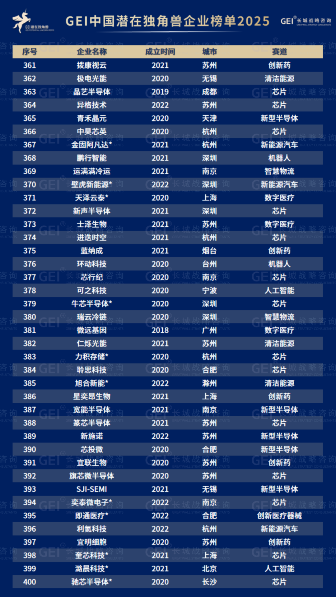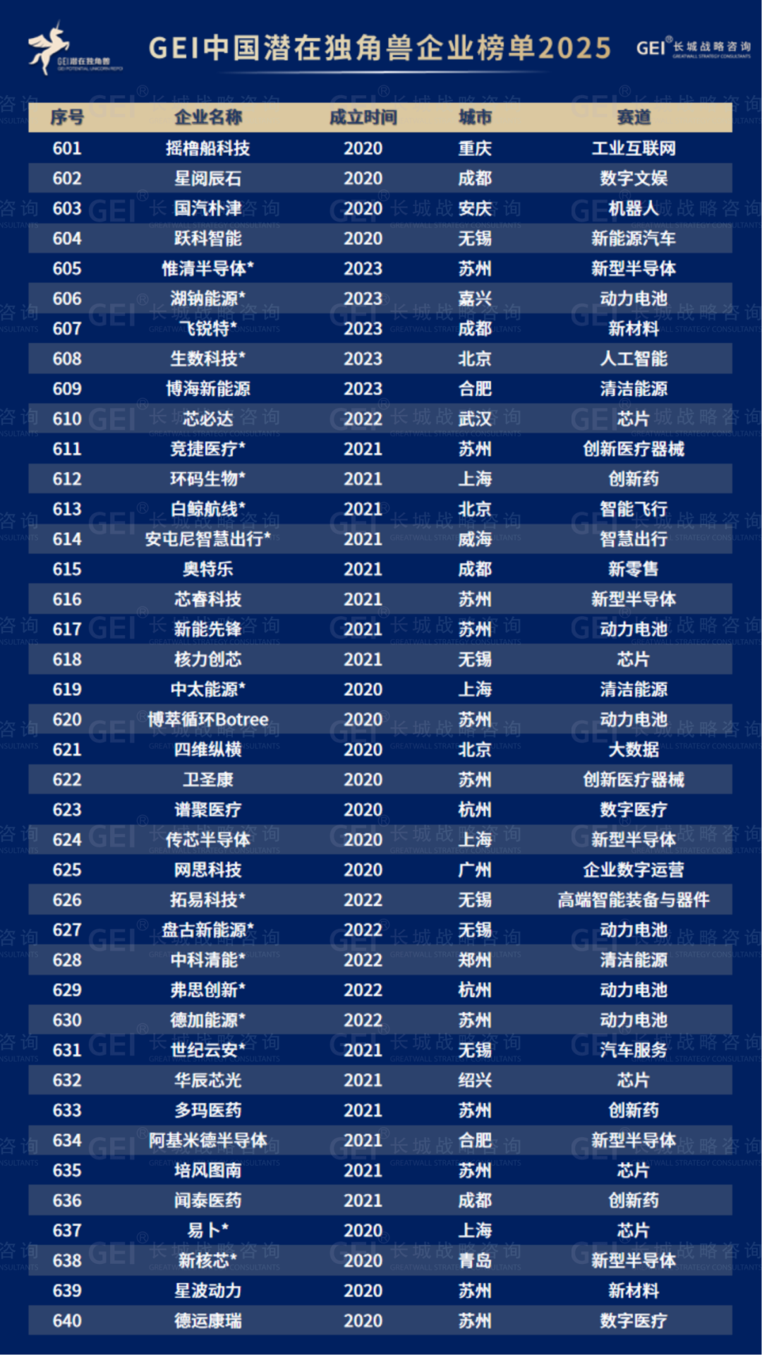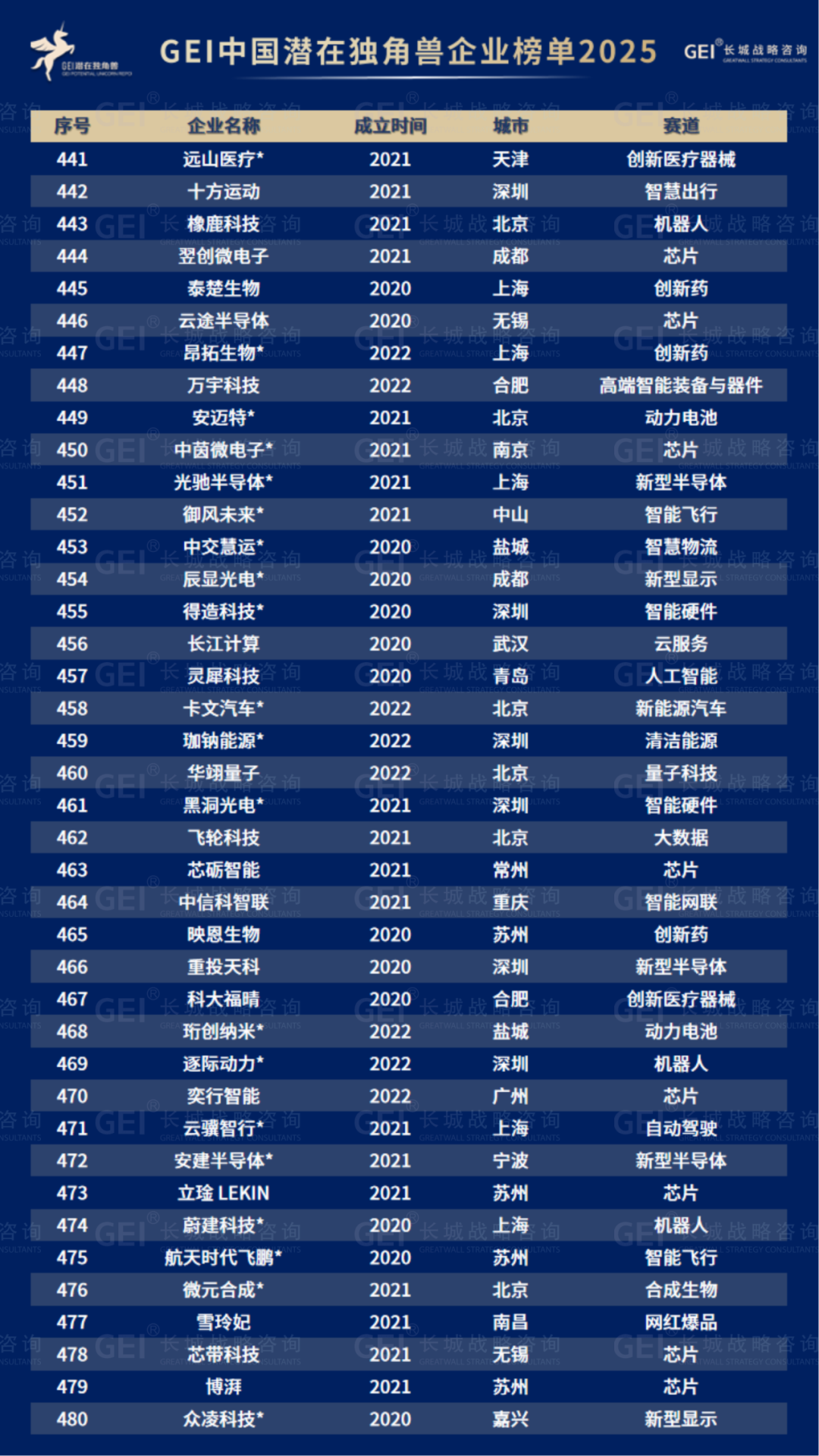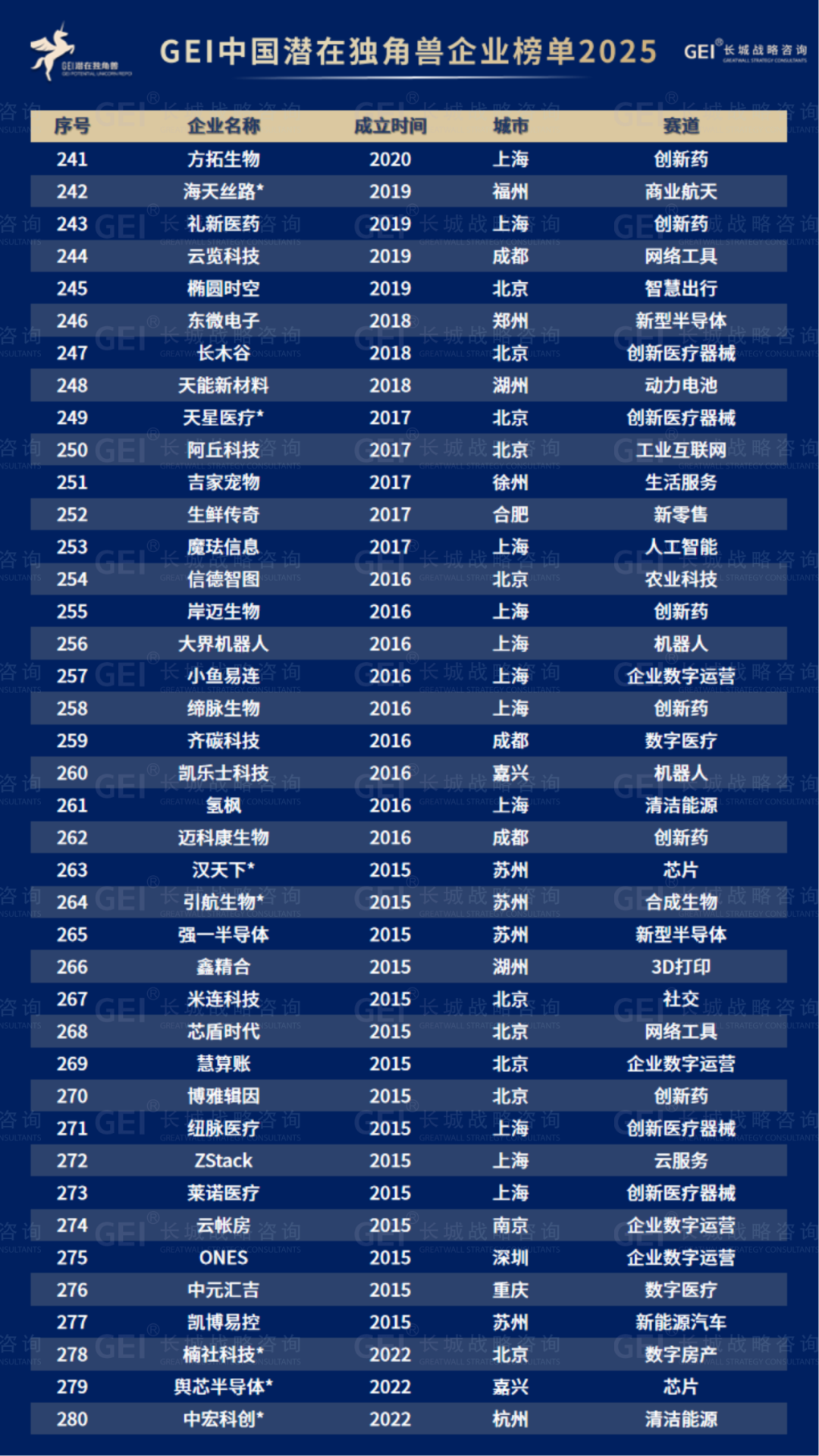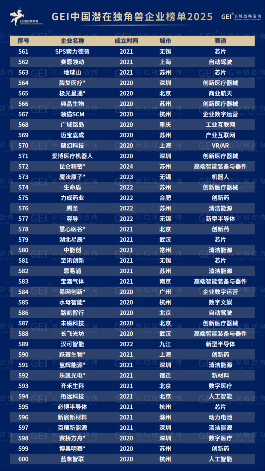 长城战略咨询是国内最早研究并发布“独角兽”榜单的智库机构,2016年起连续九年发布中国独角兽企业榜单及研究报告。2020年进一步推出潜在独角兽企业研究品牌,本次为该系列的第六期报告。