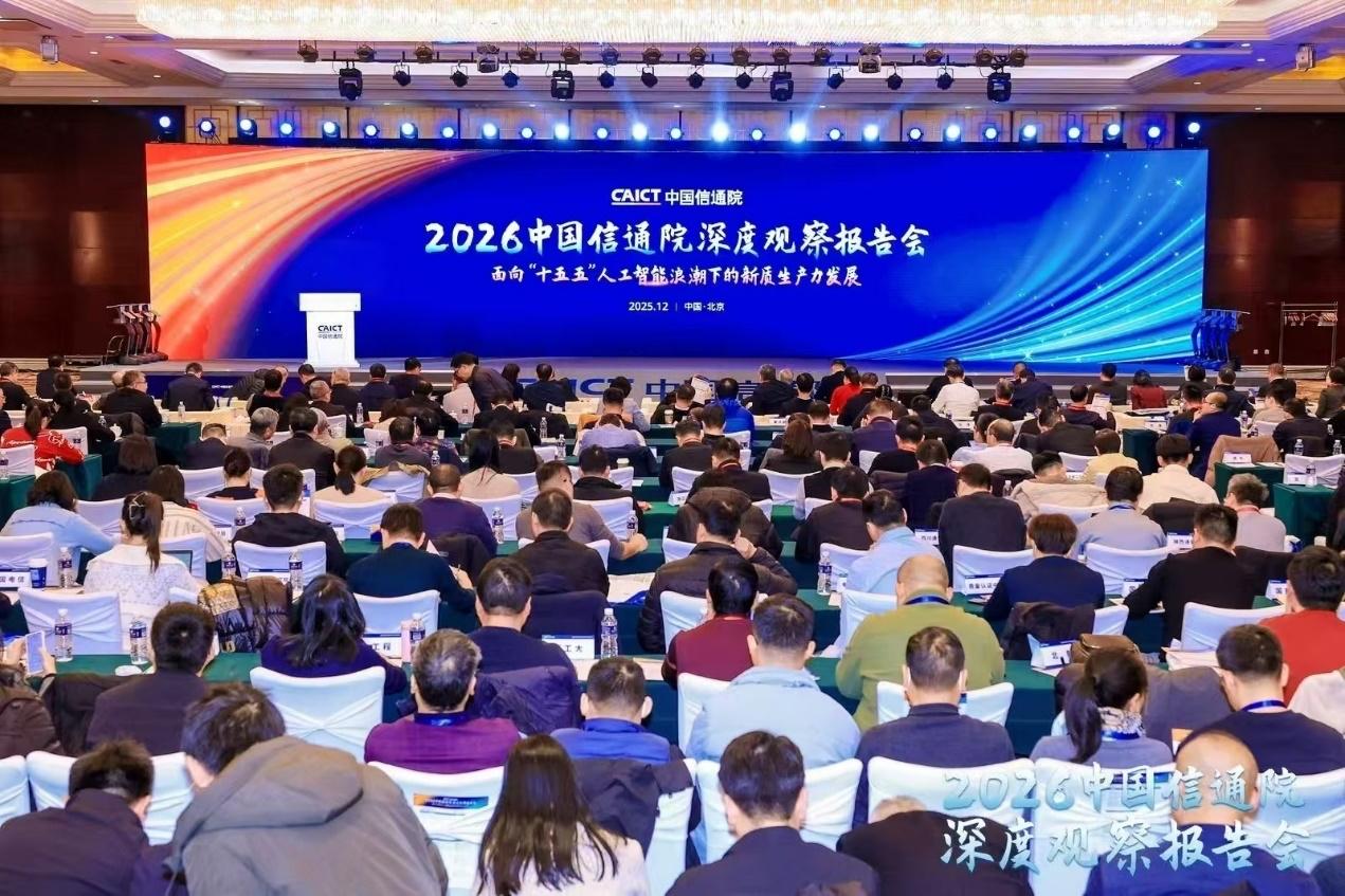 12月13日,2026中国信通院深度观察报告会主报告会在北京举办。报告会主题为“面向‘十五五’,人工智能浪潮下的新质生产力发展”。