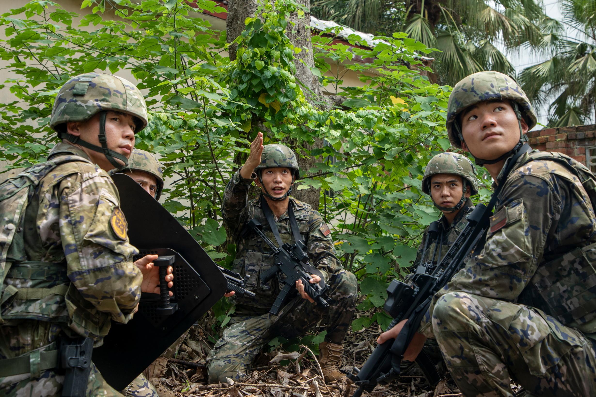 近日,武警广西总队南宁支队组织实战化军事训练,通过依托陌生地域和构设复杂情景,有效检验和锤炼官兵在特殊条件下的应急处突与协同作战能力。