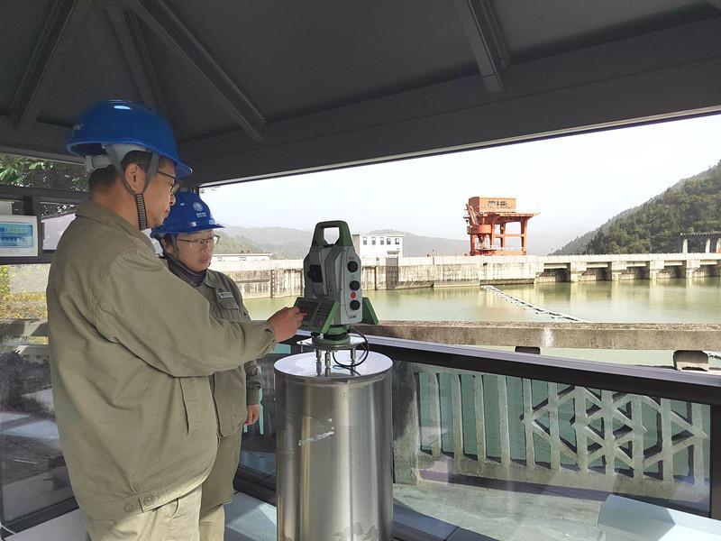 黄龙滩电厂大坝变形监测长期依赖传统大地测量技术,需4到6名监测人员协同完成。电厂大坝两岸山高林密、岸坡陡峻,电厂监测人员需携带水准仪、经纬仪、全站仪等设备反复穿梭,历经仪器架设、人工照准、反复读数等流程,作业强度大,还面临高空和陡坡作业的安全风险。