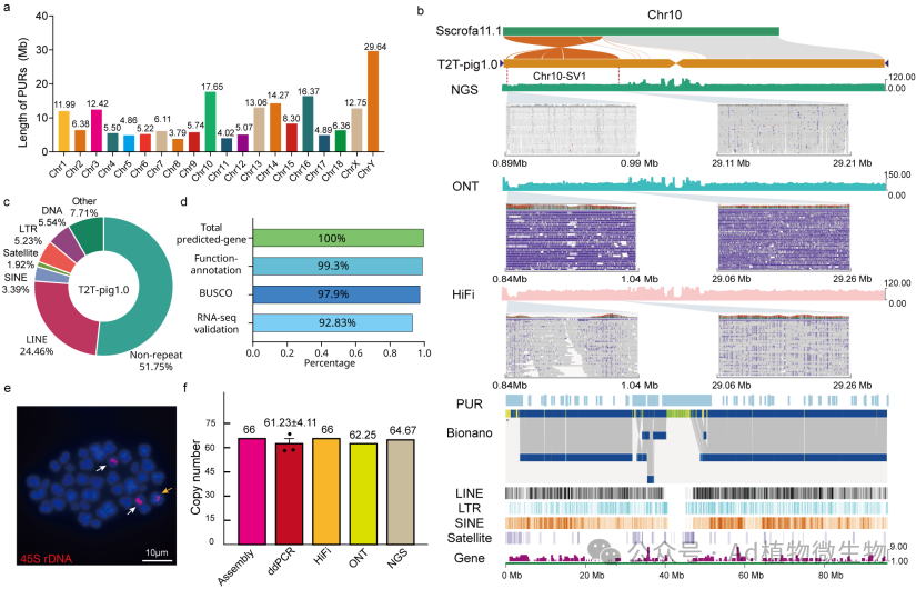 家猪自约一万年前被驯化以来,已成为全球重要的农用动物和生物医学研究模式动物。然而受测序技术限制,目前猪参考基因组在重复序列富集区域仍存在数百个缺口尚未解析,如着丝粒和Y染色体异染色质区。此外,由于缺乏高质量、完整的家猪基因组资源,其基因组进化机制及决定其独特性状的关键突变仍缺乏重要基因组资源支撑。