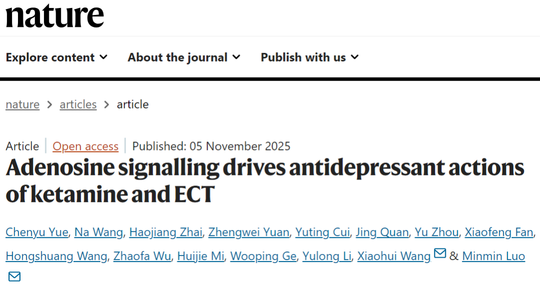 近日,北京脑科学与类脑研究所所长罗敏敏牵头的研究团队,在国际期刊《自然》发表重磅研究成果,揭开了腺苷信号通路作为氯胺酮、电休克疗法快速抗抑郁的核心机制,并创新性地推出了无需吃药打针的急性间歇性低氧干预新方案,为抑郁症治疗带来革命性变革,尤其是给难治性抑郁症患者带来了全新希望。