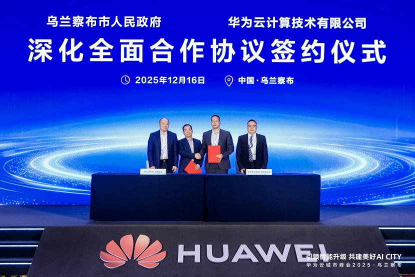 会上,乌兰察布市政府与华为云签署深化全面合作协议,并联合发布了2025年乌兰察布市智慧城市AI+场景应用。