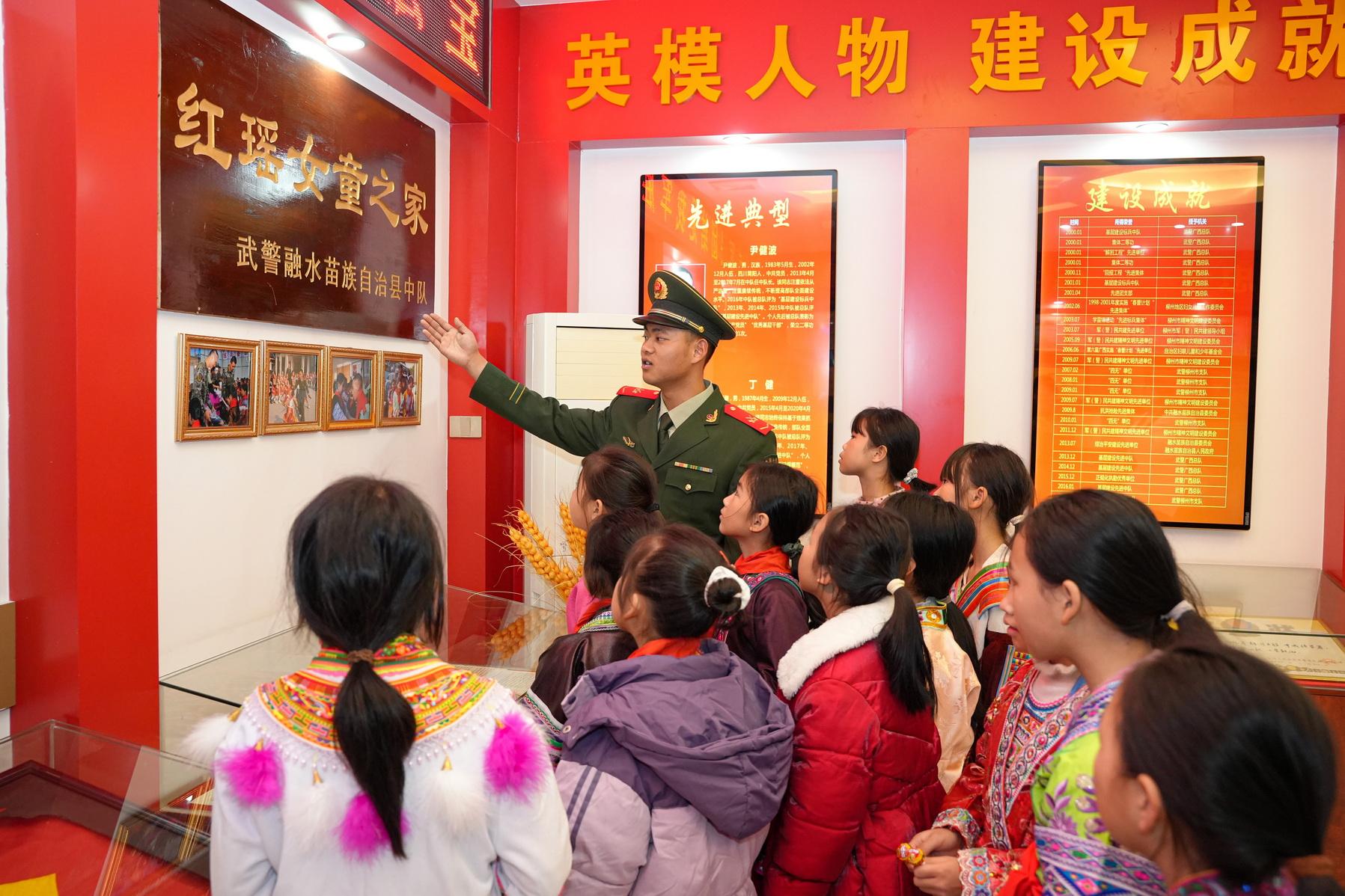 活动伊始,武警官兵整齐列队,用芦笙奏响《苗族迎宾曲》,以独具民族特色的仪式,向远道而来的女童们致以热烈欢迎。活动期间,官兵们不仅为孩子们送上学习用品,手把手教她们整理内务、叠“豆腐块”军被,更通过刺杀课目演示、军史队史讲解、红色故事分享等丰富形式,将爱国强军的种子悄然植入孩子们心间,潜移默化引导她们树立正确的国家观与世界观。