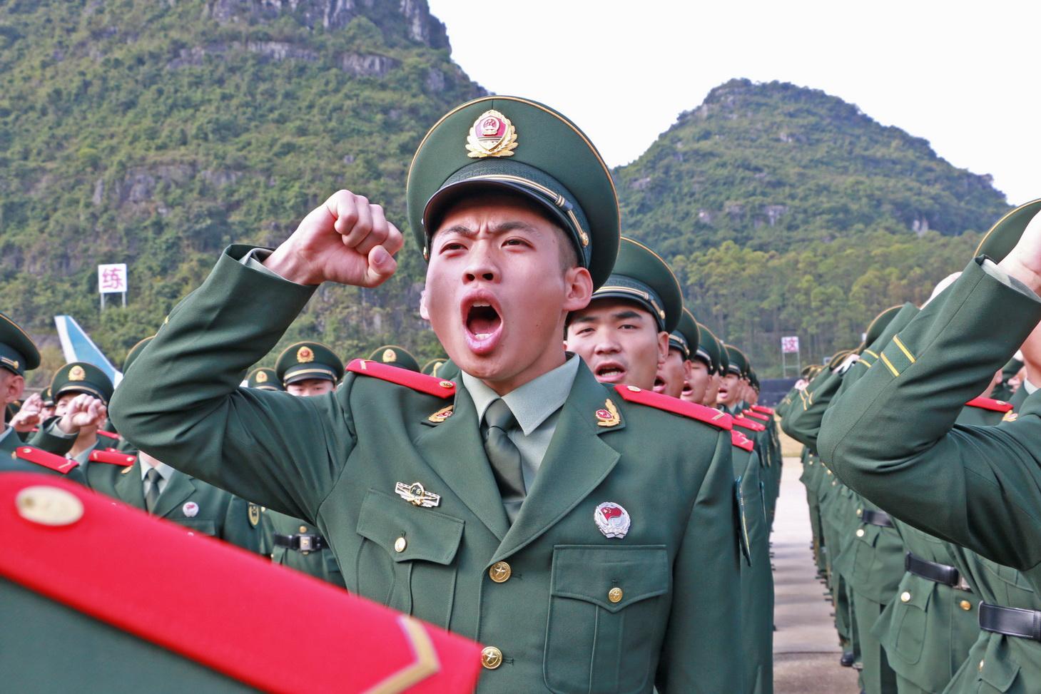 “我是中国人民武装警察部队军人,我宣誓……”在领誓人的带领下,全体新兵庄严宣誓。铿锵有力的誓言响彻营区,字字千钧、句句铿锵。