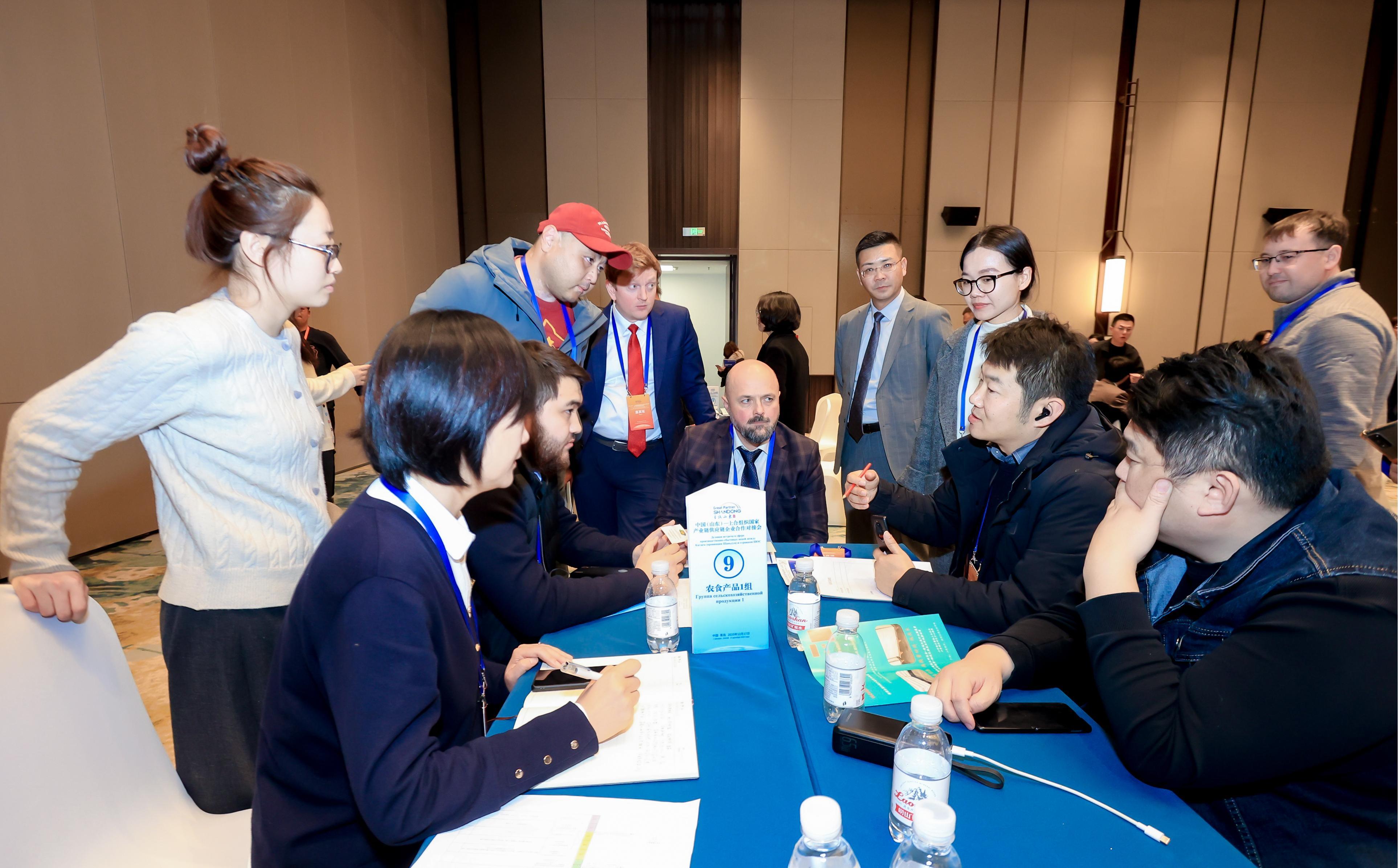 中国(山东)—上合组织国家产业链供应链企业合作对接会设置平台商超、石油化工、工程装备、建筑材料、农业食品、纺织等重点产业B2B对接环节,180多家国内外企业开展“一对一”精准配对洽谈。