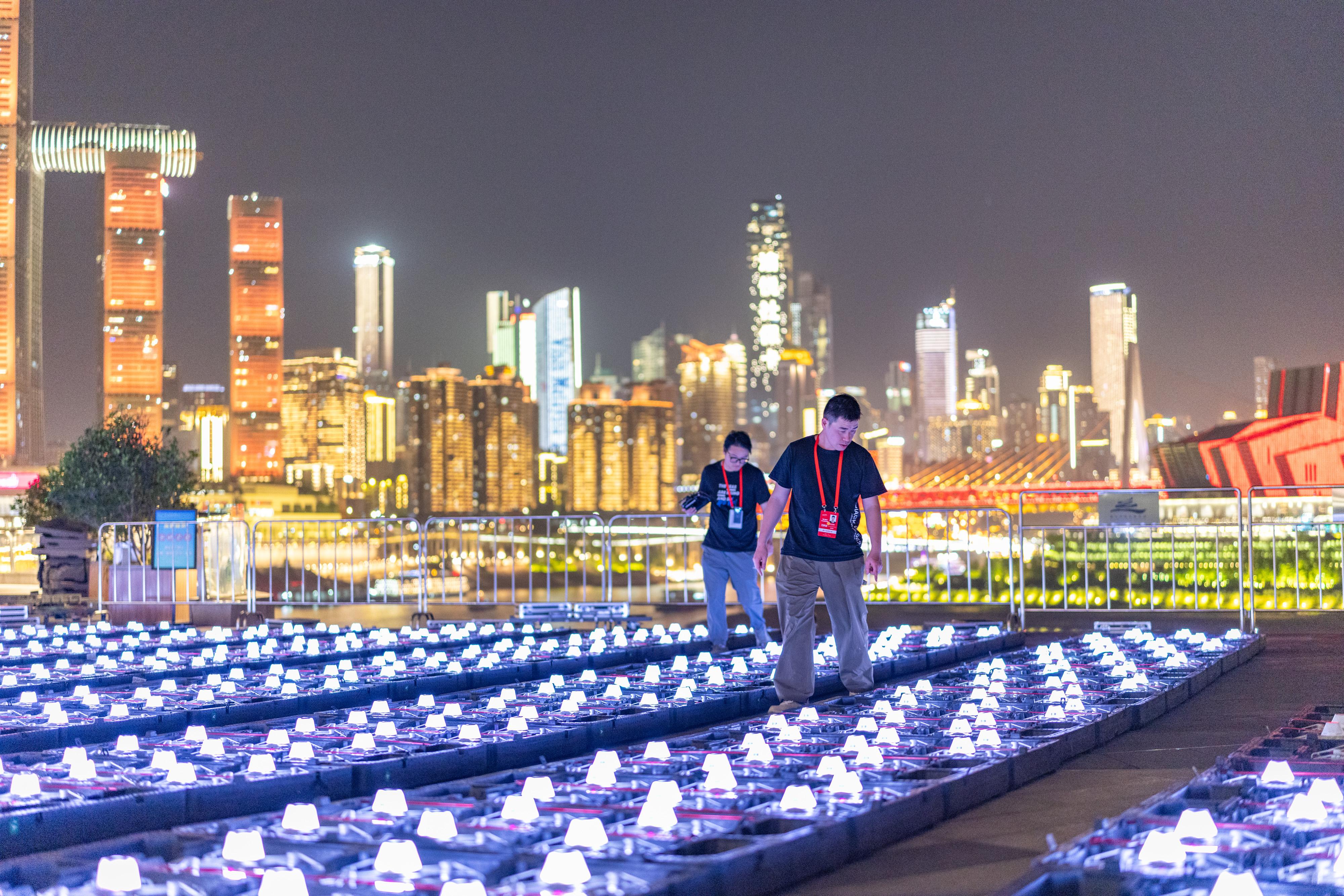 夜幕低垂,数百台无人机在嗡鸣间腾空而起,伴随着音乐节奏,灯光明暗交替中,忽而拼叠出高楼大厦、忽而变换为游龙盘桓……