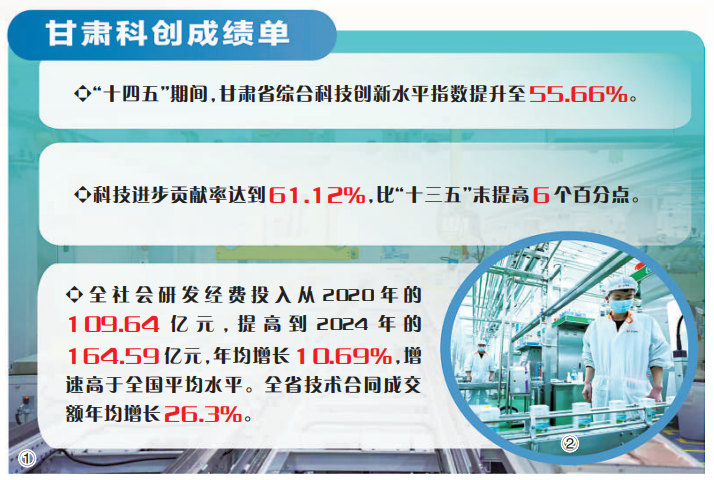 产业升级加速推进,兰白两区创新蝶变,科技赋能文物保护……“十四五”期间,甘肃省以强科技行动为牵引,把资源禀赋转化为发展优势,创新驱动高质量发展的脚步愈走愈稳。