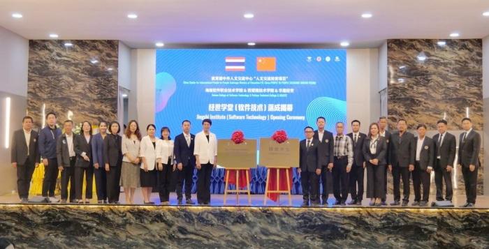在中泰建交50周年及海南自贸港全岛封关的历史性节点,12月15日,海南软件职业技术学院(以下简称海软)与泰国芭堤雅技术学院共建的“经世学堂”与“国际产教融合创新中心”在泰国芭堤雅揭牌。