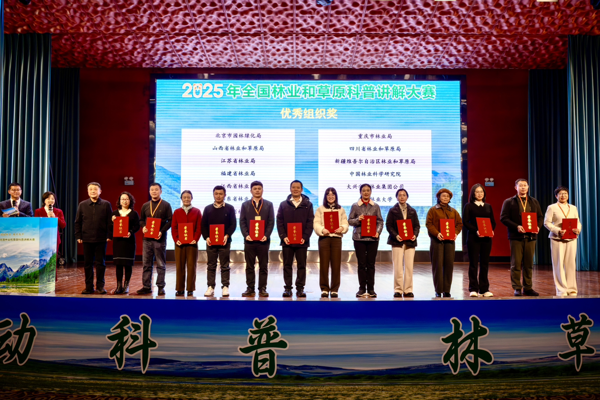 12月18日至19日,由国家林草局科技司主办,四川省林草局和四川农业大学承办的2025年全国林业和草原科普讲解大赛在四川成都成功举行。经过半决赛、决赛的激烈角逐,大赛最终评选出一等奖9人、二等奖14人、三等奖22人,北京市园林绿化局、山东省林业局、四川省林草局等13家单位获优秀组织奖。