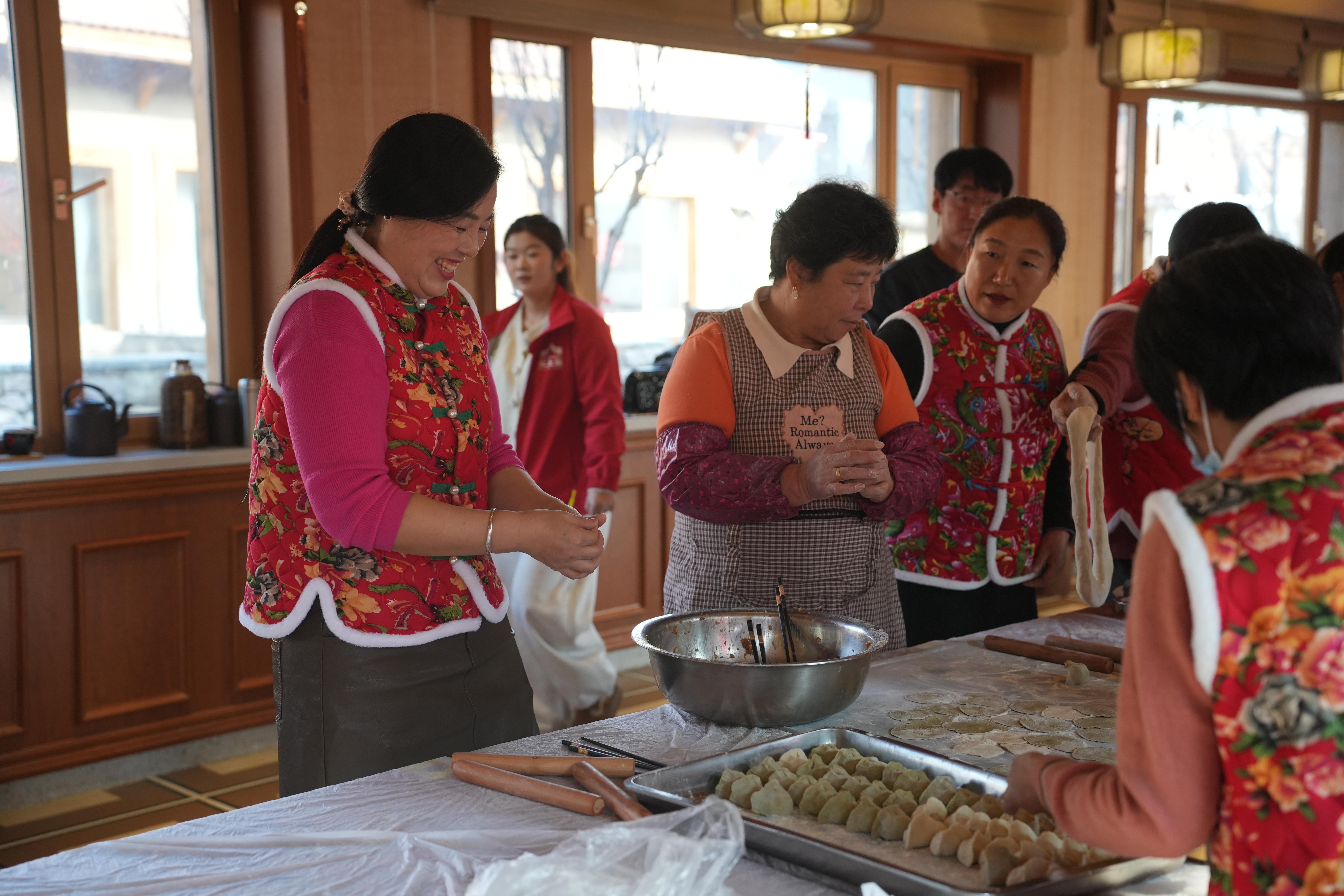 欢声笑语间,热气腾腾的饺子陆续上桌,乡亲们端起茶杯,互相寒暄着:“还是大锅的饺子吃得香!”“这锅饺子下肚,年味都有了!”