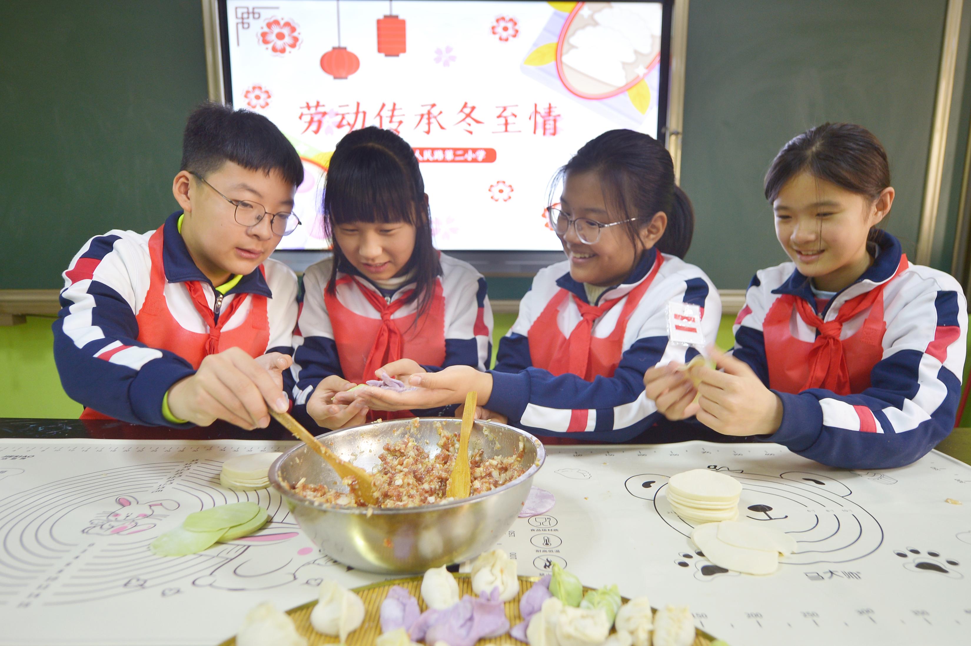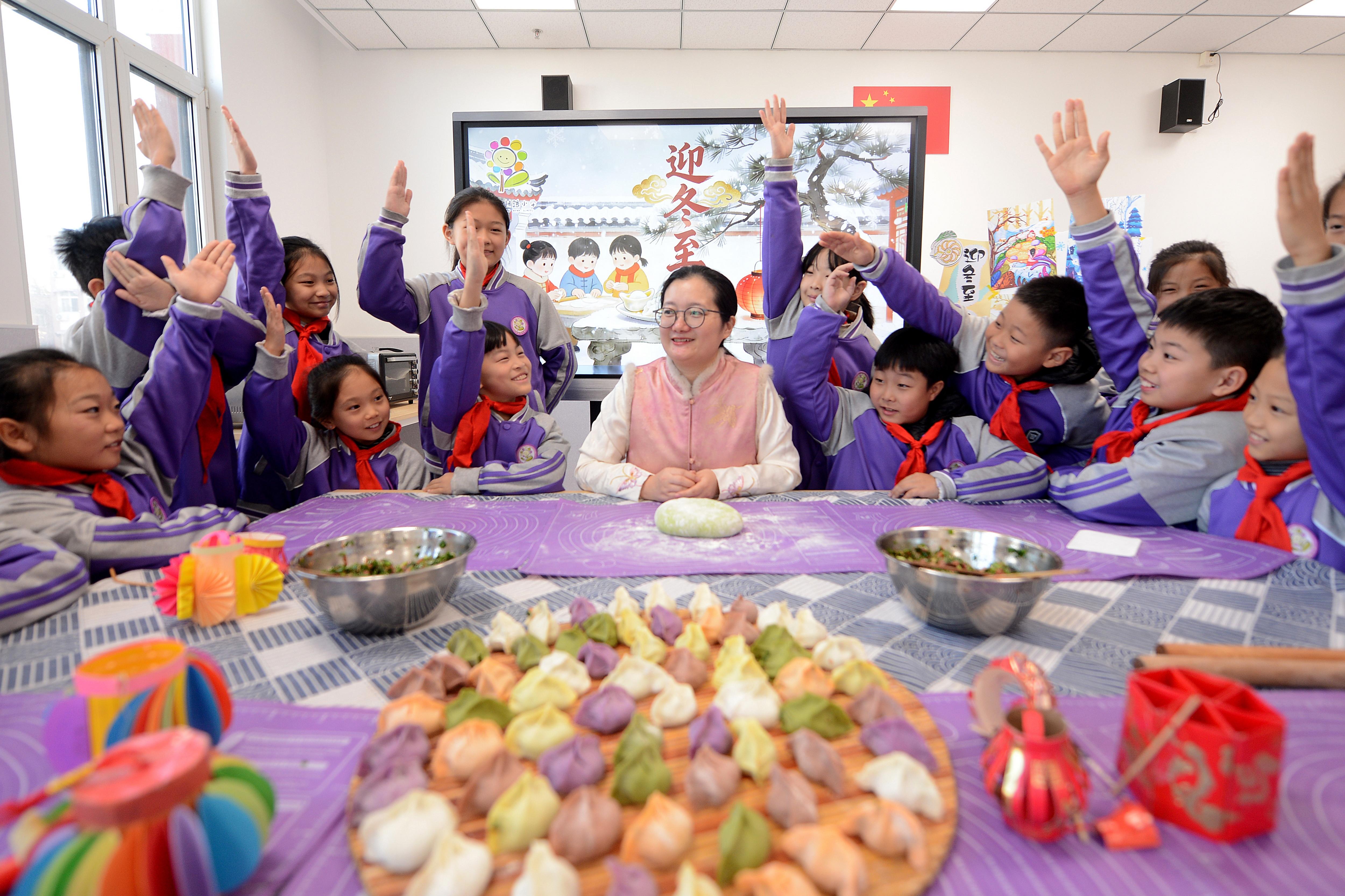 冬至临近,山东省青岛市市北区杭州路小学、人民路第二小学等校开展冬至节气文化体验活动。孩子们通过了解冬至来历、学习传统习俗,体验包饺子,感受节气里的文化魅力。
