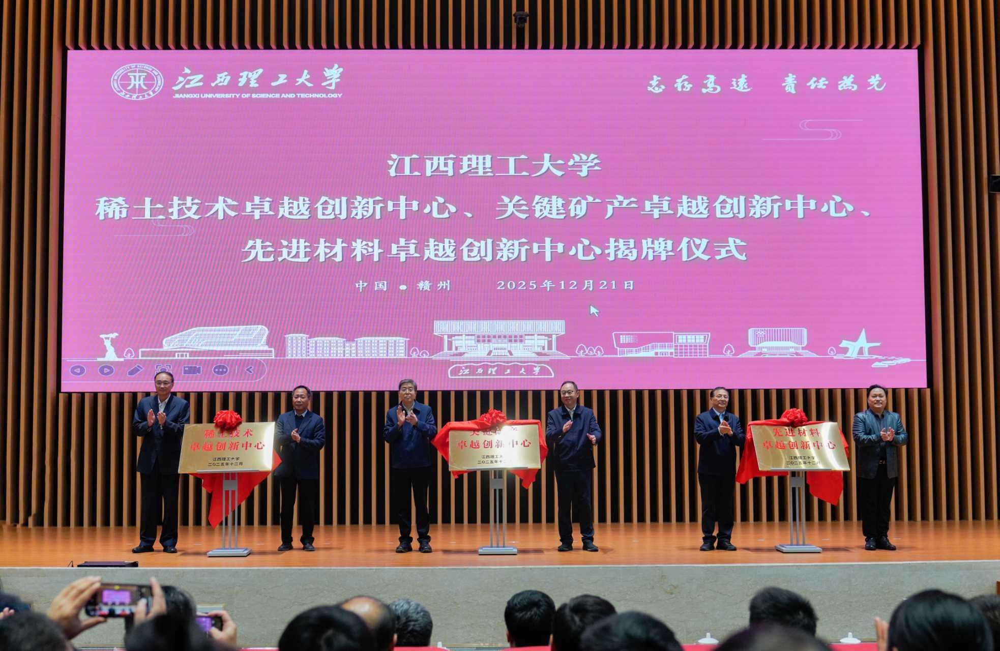 12月21日,江西理工大学举行稀土及关键矿产领域三大卓越创新中心揭牌暨中心主任聘任仪式。此次活动将为该校汇聚校内外稀土及关键矿产领域教育、科技、人才等资源提供支撑,助力学校全面推进稀土及关键矿产领域教育科技人才一体化发展,为国家稀土战略安全与地方万亿级关键矿产产业注入强劲动力。