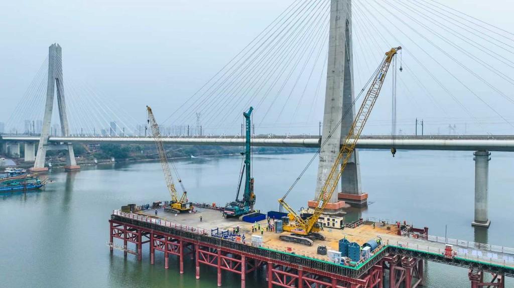 “我们采用双驳船、旋挖钻、履带吊、液压振动锤的组合工艺开展大桥桩基施工,可有效提升施工效率,最大程度压缩工期,保障长赣高铁全线施工进度。”中国铁建大桥局大桥项目分部经理刘春成介绍。