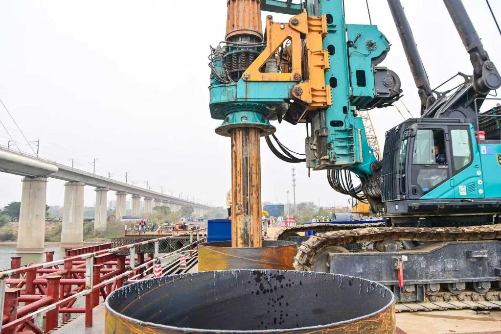 12月22日,在江西赣州章贡区长赣高铁赣江特大桥施工现场,一台超大型多功能旋挖钻机的钻头精准入水、顺利开钻,标志着长赣高铁赣江特大桥正式开工建设。