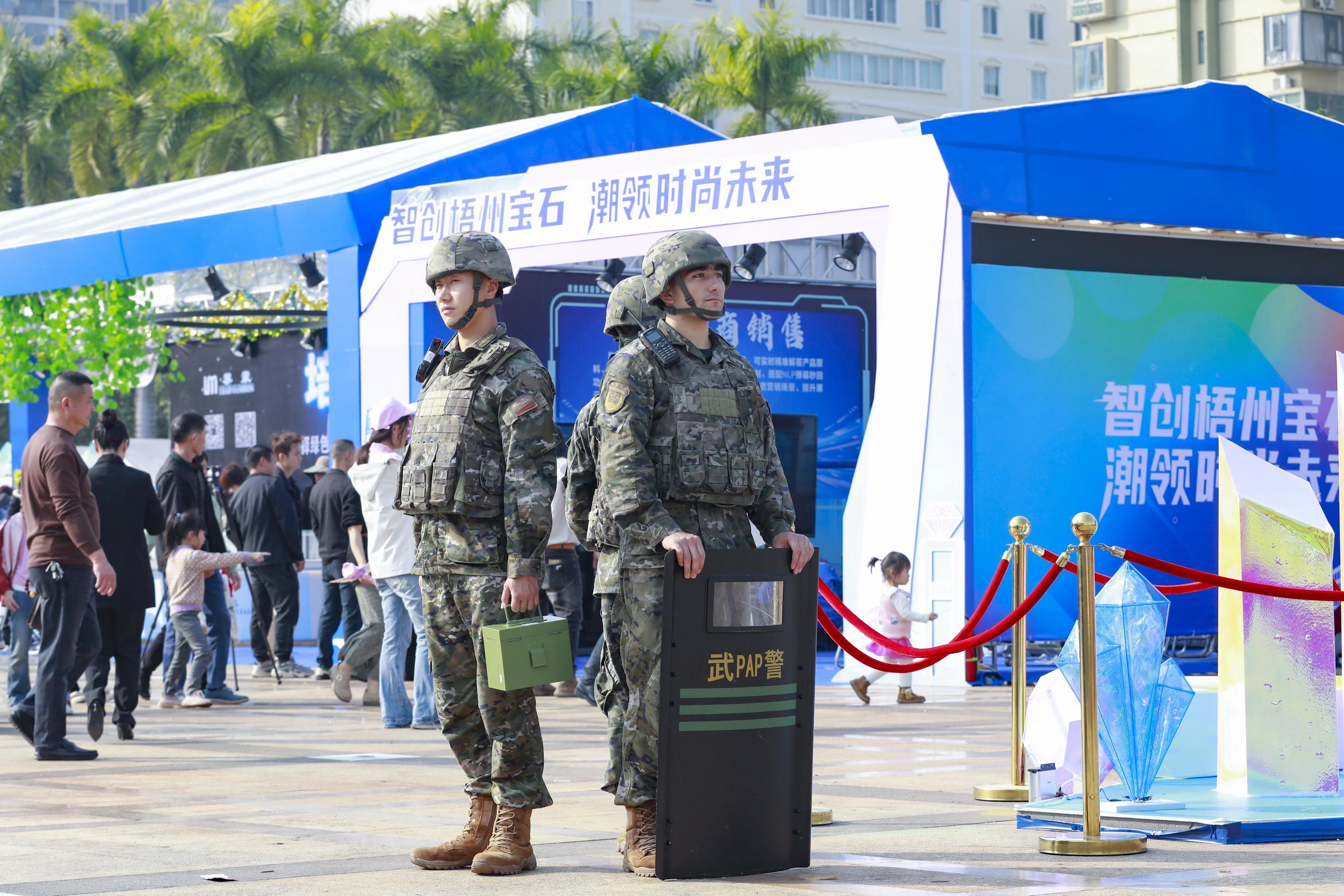 近日,以“智创梧州宝石 潮领时尚未来”为主题的第二十二届梧州宝石节正式拉开帷幕。这场为期五天的行业盛会,成为展现梧州“世界人工宝石之都”魅力的重要窗口。为保障活动期间社会秩序稳定、市民与客商安全,武警广西总队梧州支队官兵与公安机关协同开展社会面联勤武装巡逻,以挺拔姿态与扎实行动构筑起立体安全屏障。