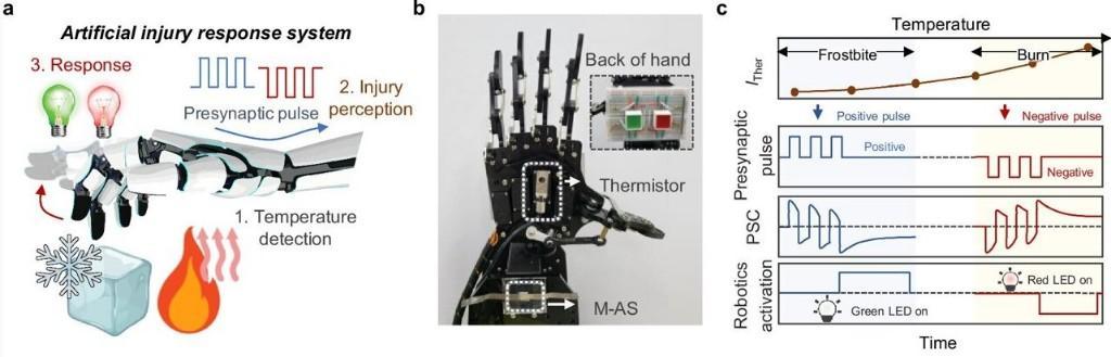 团队还通过一个简易机器人系统展示了其应用潜力:当设备感知到热时,内部离子运动可放大信号,触发机械手迅速从高温物体撤回,模拟人类的反射行为。这预示着未来或可开发出能够学习、响应环境刺激,并在完成任务后无害化消失的环保机器人。