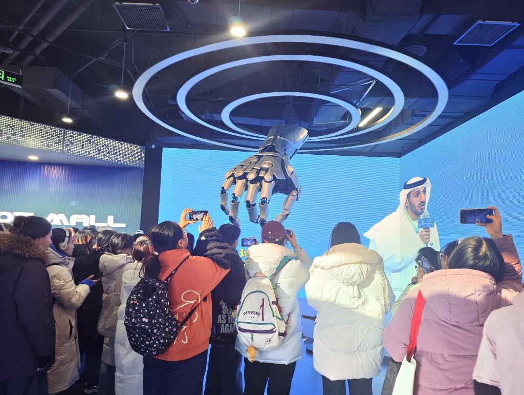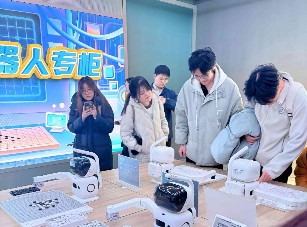 实践教学中,学生们先后走进机器人大世界与百度Apollo Park两大科技阵地,开启一场科技探秘之旅。在机器人大世界,学生们跟随人类讲解员与机器人讲解员“天工2.0”,系统了解具身智能机器人的发展脉络与应用场景,沉浸式体验多项互动项目:与“爱因斯坦”机器人探讨相对论、围观“李白”机器人现场作诗、同机器狗“小白”嬉戏互动,趣味十足的体验让大家兴致盎然,也积累了鲜活的采访素材。