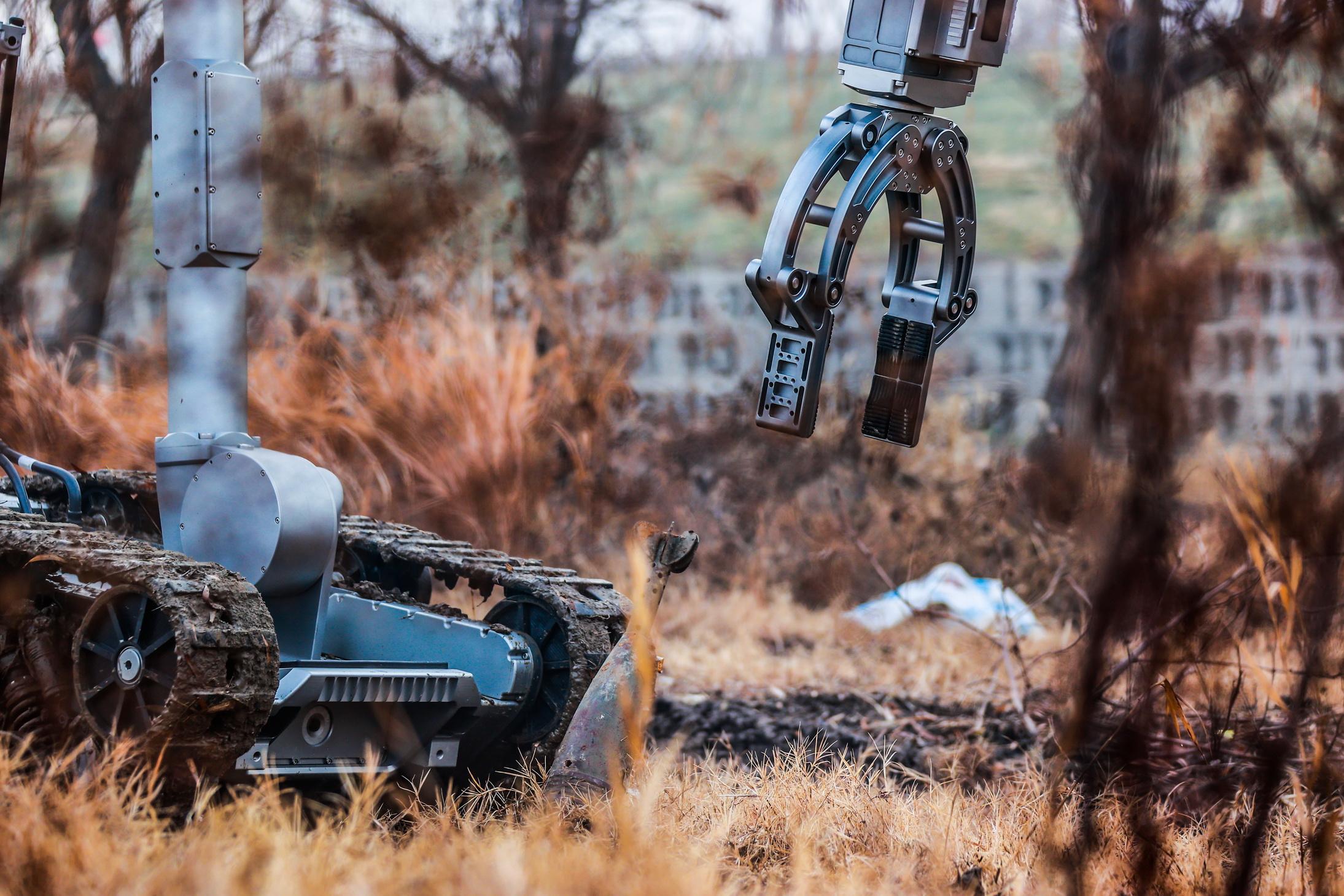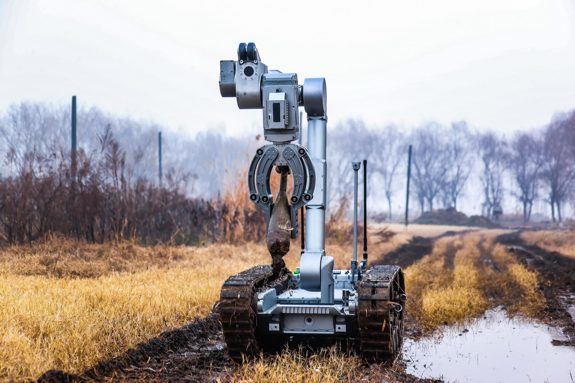 “未爆弹位置已标识。”发现未爆弹之后,无人机操作手迅速进行标识,而后搜排爆组遥控排爆机器人前出查明未爆弹具体情况。到达指定位置后,操作手胡强辉缓缓操纵机械臂夹持毛刷清理未爆弹覆土,随后将未爆弹转移至标记区域,并在无人机配合下设置起爆装药,实施诱爆。