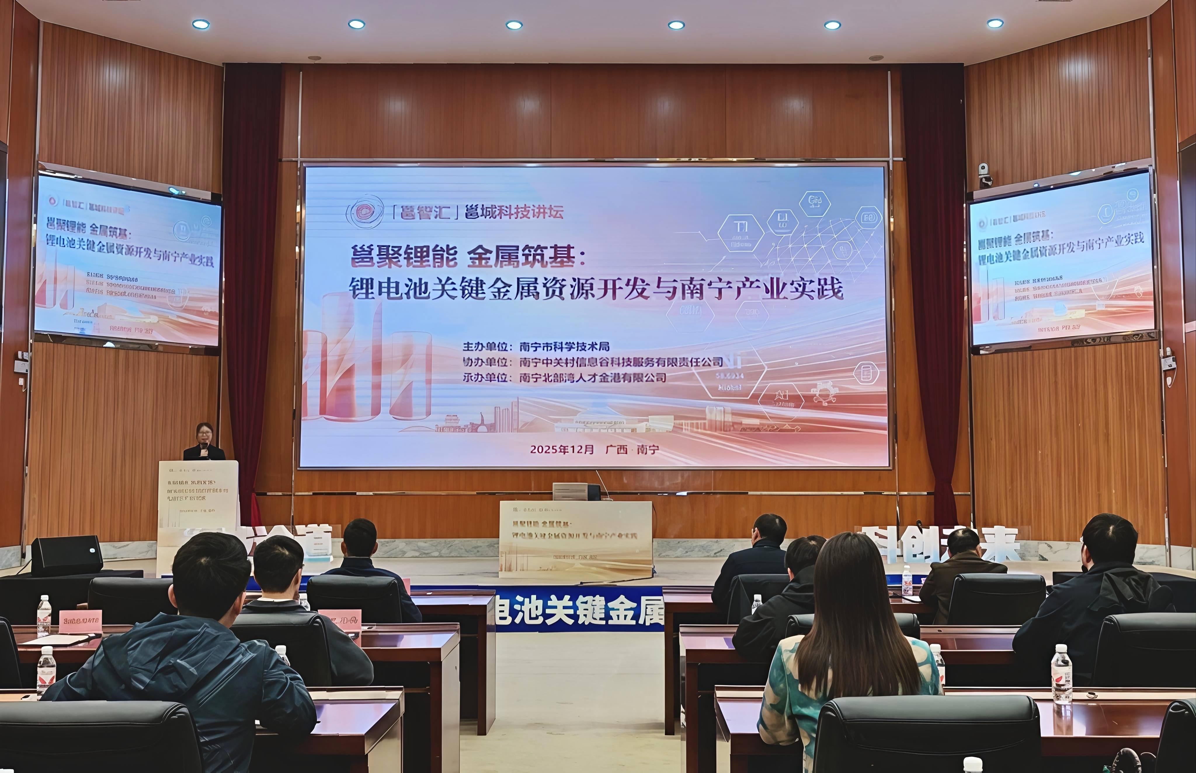 近日,第十五期“邕城科技讲坛”活动在南宁中关村创新示范基地举行。南宁市相关部门代表、行业专家学者、企业代表等各界会聚一堂,共同聚焦锂电池关键金属资源开发核心议题,探讨南宁新能源产业高质量发展新路径。