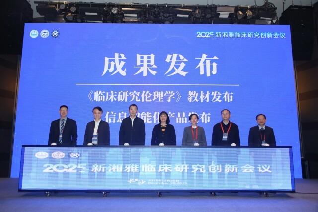 会上发布两项成果:中南大学湘雅三医院党委书记何庆南、中南大学湘雅药学院院长阳国平联合主编的全国高等学校教材《临床研究伦理学》由人民卫生出版社正式出版;中南大学湘雅三医院临床试验研究中心研发的“临床试验参与者智能招募系统”“临研药品智核一体机”“临研教育培训系统”三款智能化产品亮相,以数智技术破解行业效率瓶颈。