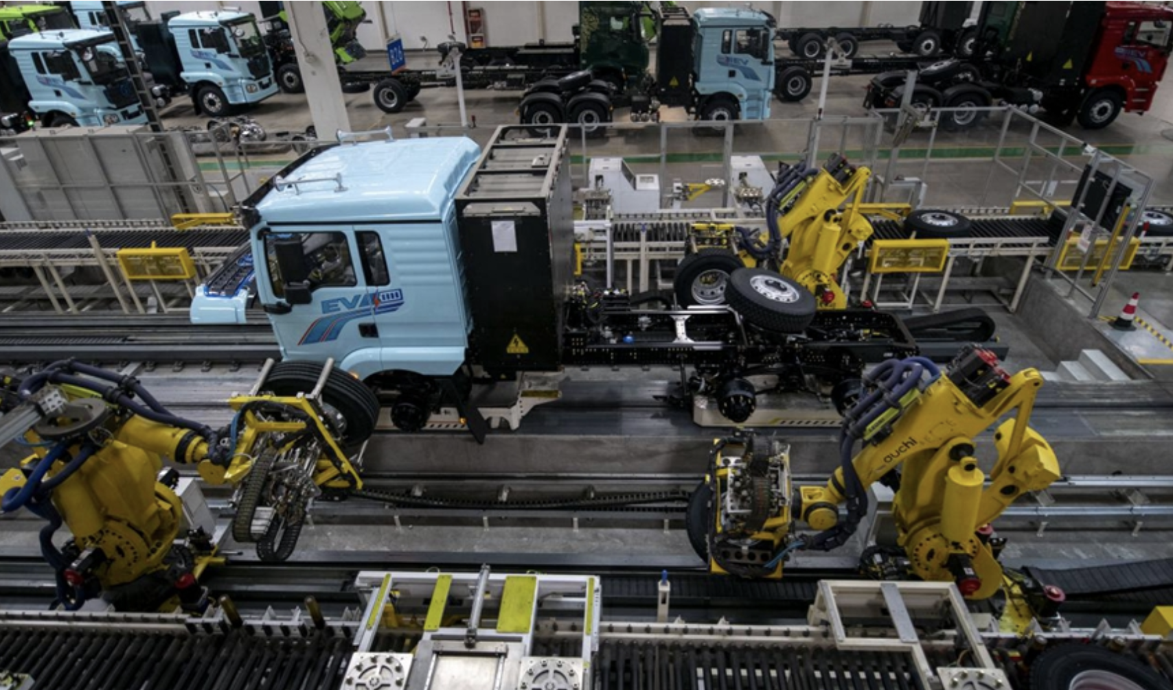 在陕西汽车控股集团有限公司(以下简称“陕汽”)新能源智能工厂里,每4.8分钟就有一辆新能源重卡驶下生产线。