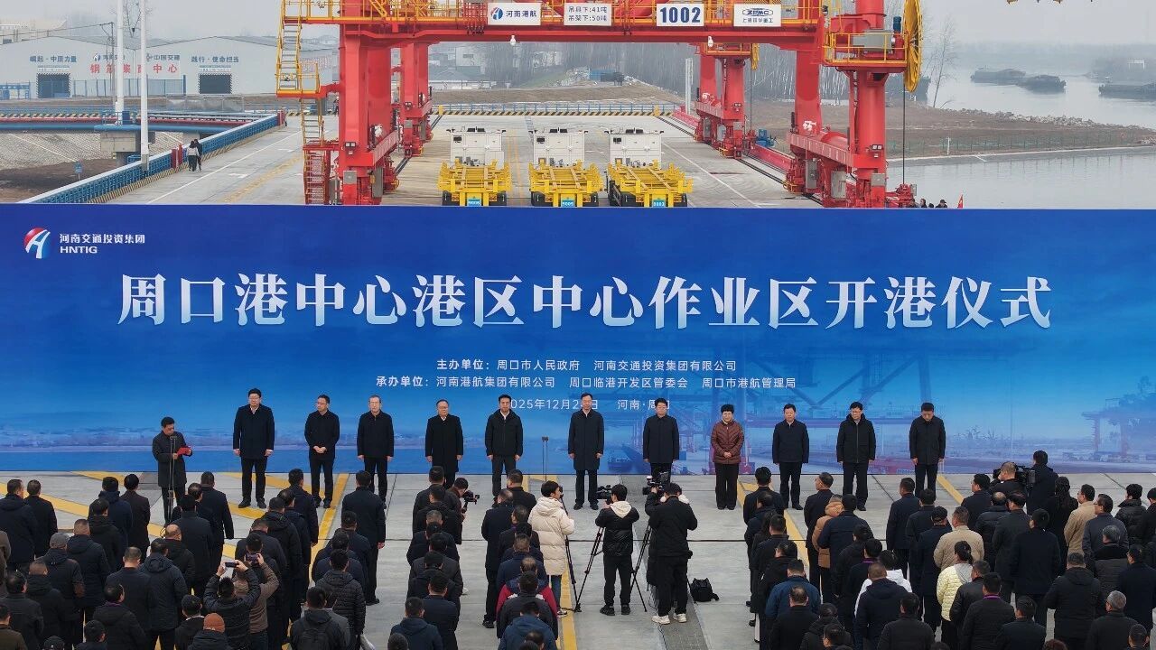 12月24日,随着一声悠长的汽笛鸣响,满载集装箱的货轮从周口港中心作业区缓缓启航,标志着河南省内河航运发展迎来里程碑时刻——周口港中心作业区(一期)正式开港运营。这不仅是河南首个设计年通过能力超百万标箱的现代化集装箱专用码头,更是一座集自动化、信息化、智能化、绿色化于一体的内河港口新标杆,为河南“向海图强”注入强劲动能。