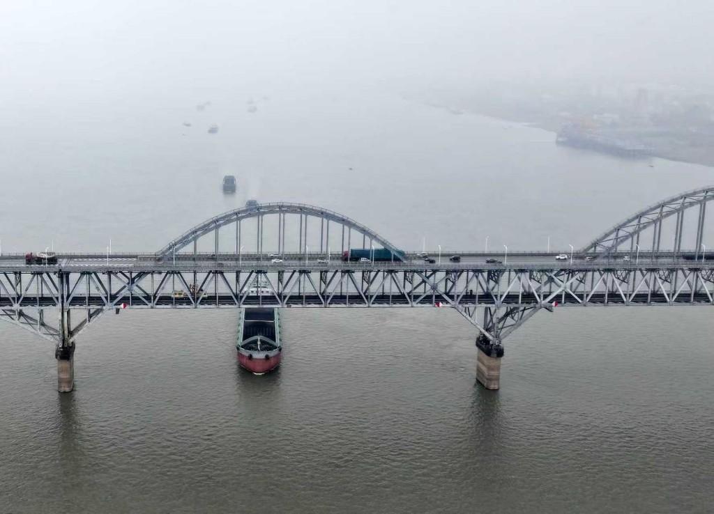 12月24日,中国铁路南昌局集团有限公司南昌供电段九江供电车间接触网工正在寒风中对京九铁路九江长江大桥接触网设备开展绝缘子清扫,确保低温天气下九江长江大桥铁路桥接触网供电安全。