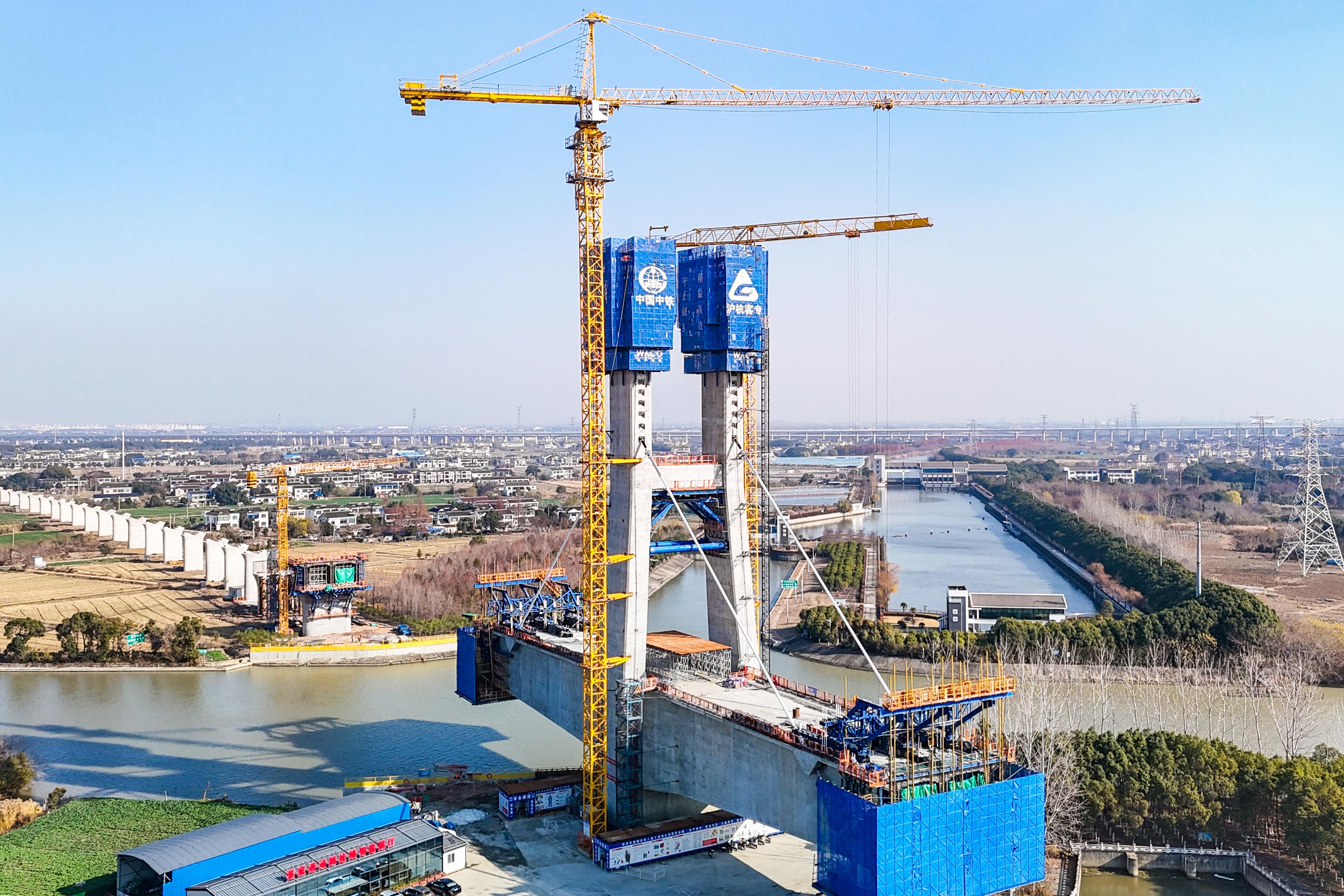 12月26日上午,在江苏省张家港市与常熟市交界处光明村施工现场,最后一方混凝土浇筑入模,标志着由上海国铁建管公司建设管理、中铁五局承建的新建南通至宁波高速铁路(以下简称“通甬高铁”)跨张家港河斜拉桥主塔成功封顶。这是通甬高铁全线首座完成主塔封顶的斜拉桥,标志着工程建设取得阶段性成果,为后续全桥合龙奠定坚实基础。