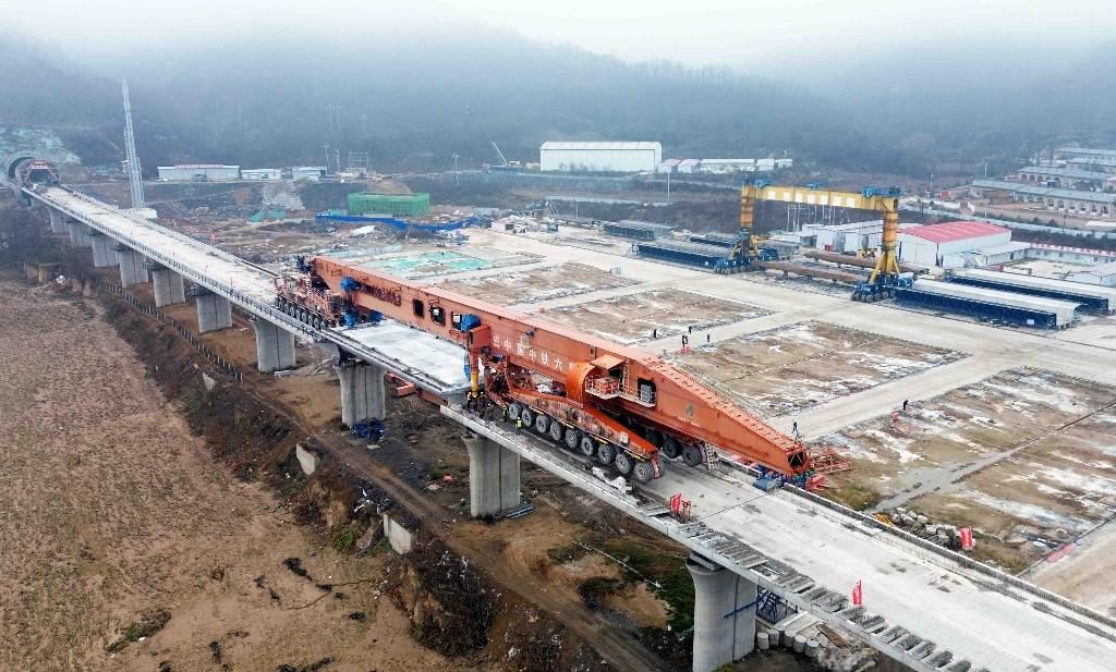 面对桥隧交替地貌与远距离运梁挑战,丰桥公司自主研发多功能“横移平台”,实现喂梁、横移、调位于一体的机械化自动化作业。与传统工艺相比,每孔箱梁架设时间缩短3小时,累计节约工期75天,彰显工效与成本优势。施工中同步践行绿色智慧理念,通过高效除尘设备、环保材料降低生态影响,依托信息化管理系统、智能监控中心及无人机勘查,打造“智慧梁场”实现精细化管控。
