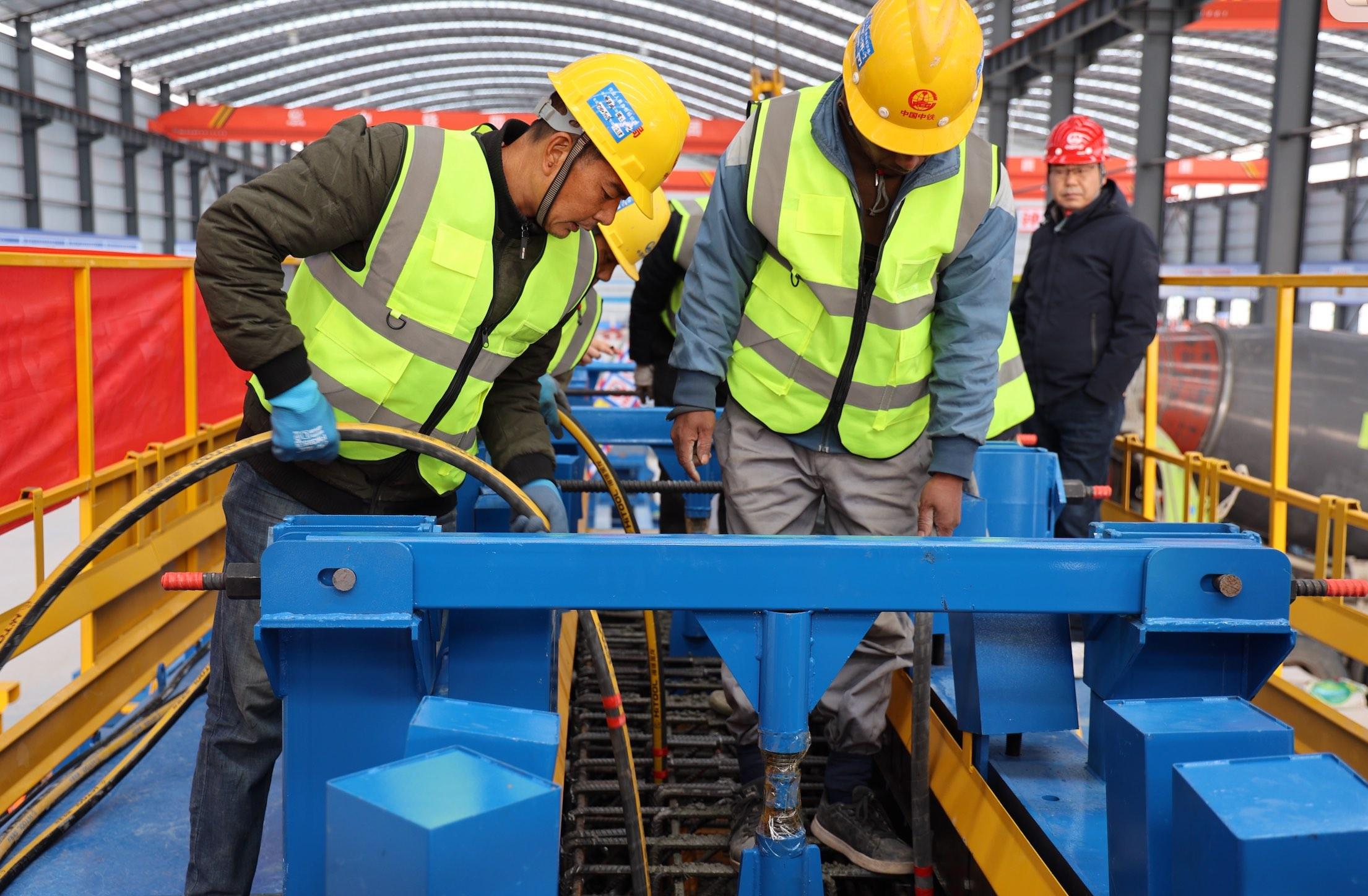 面对极高的线形和精度挑战,项目团队开展了系统性科技攻关,自主研制了包括柔性环形生产线、全自动液压模板、自动抹面机、智能蒸养喷淋系统、智能张拉压浆台车等在内的全套智能工装设备,并创新引入了高精度测量设备及工装、成品梁智能检测小车。这一系列技术与装备的集成化应用,实现了轨道梁从生产到检测的全流程精度控制,保障了工程质量。