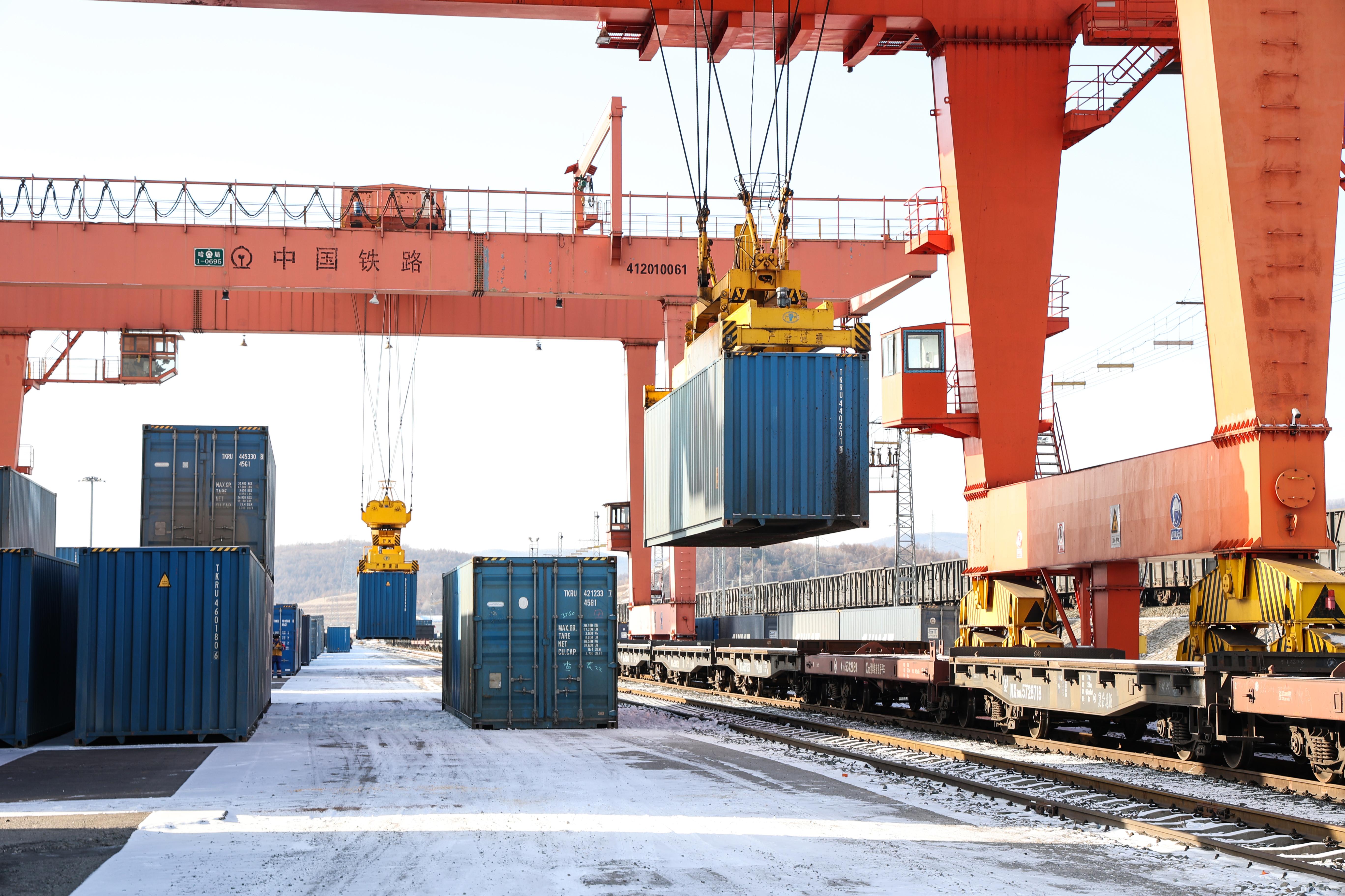 目前,经绥芬河铁路口岸运行的中欧班列已通达欧洲5国,联通国内20多个城市,月度开行量从最初2列跃升至最高超90列。承运货物从初期单一板材,逐步扩展到家电、商品汽车、汽车配件等高附加值商品,有力支撑我国外贸深度融入全球产业链供应链体系。