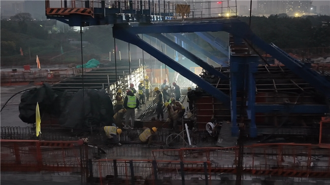 12月24日晚,随着最后一方混凝土浇筑完成,位于重庆市荣昌区的香国大道项目濑溪河大桥右幅连续刚构桥顺利合龙,标志着由中铁二局承建的香国大道南延伸段(一期)道路工程正式进入桥面附属施工阶段。