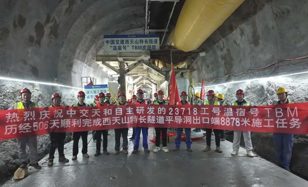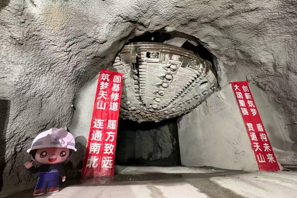 这项重点工程的贯通,离不开中交天和机械设备制造有限公司自主研制的三台大国重器:全球首创新型压注工法硬岩掘进机“天山号”“胜利号”,以及世界首台高寒高海拔高地应力超大直径竖向硬岩掘进机“首创号”的联合攻坚。