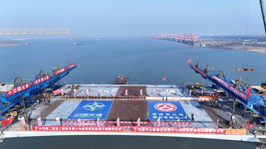 12月29日晚,由南昌市公路事业发展中心投资建设、中交二航局承建的新南大道(G320)昌南大桥顺利合龙,项目实现全线贯通。新南大道项目按照一级公路兼顾城市道路的标准设计,起点位于南昌县向塘镇,终点至新建区西山镇龙桥村,路线全长49.1公里,采用双向6车道设计。由中交二航局承建的A标段全长7.618公里,其中昌南大桥是全线关键控制性工程,全长3852米,桥宽37.5米,主桥设计为混合梁V型墩连续刚构桥,单孔最大跨径达180米,技术水平国内领先。