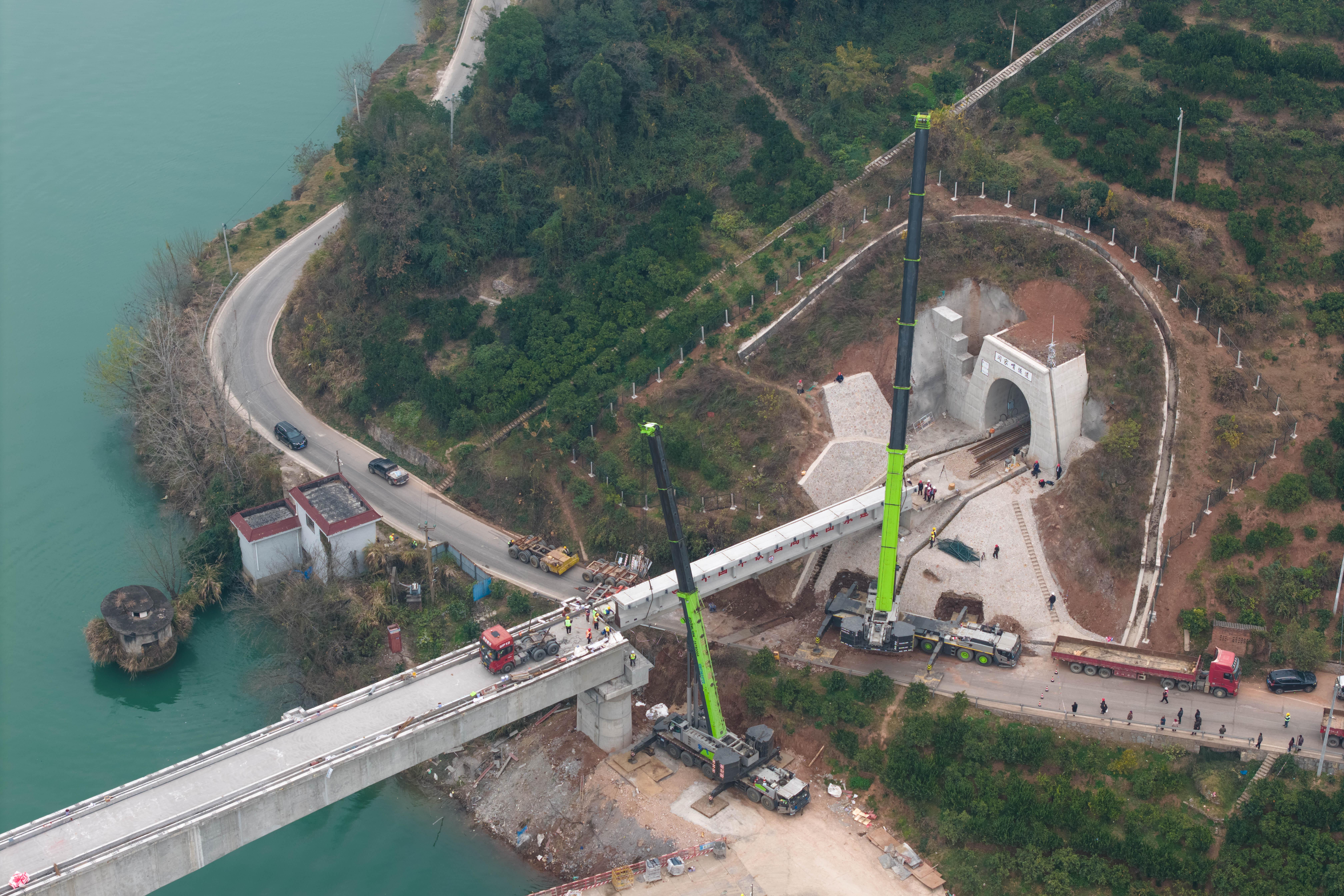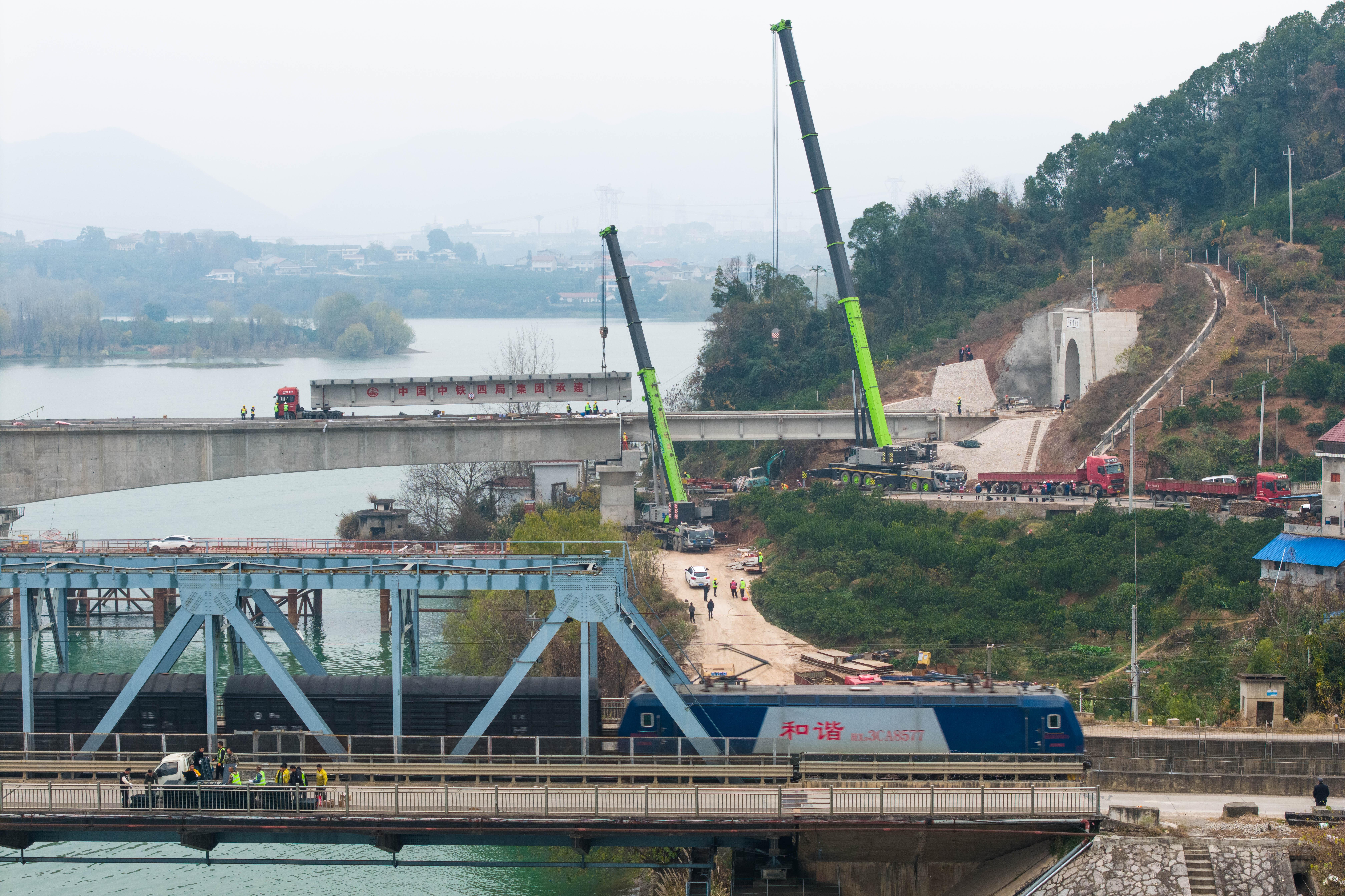 12月29日,在湖南省石门县陕煤石门2×66万千瓦扩能升级改造铁路专用线工程施工现场,随着最后一片长32米、重140吨的简支T梁经过“空中接力”后缓缓落下、精准入位,澧水特大桥22片简支T梁全部完成架设。这标志着陕煤石门2×66万千瓦扩能升级改造铁路专用线工程全线贯通,也为后续铺轨奠定坚实基础。