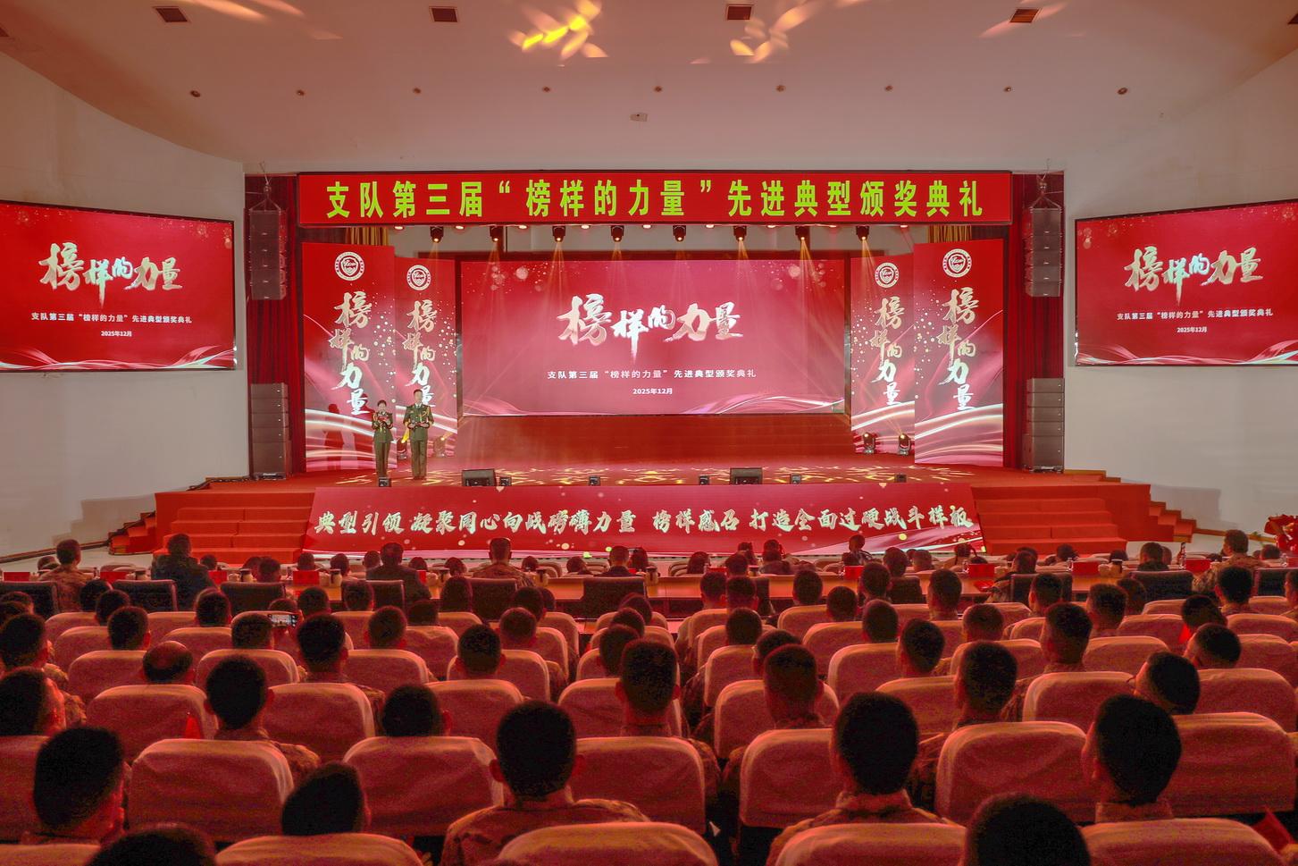 “身边的典型最有温度,真实的事迹最暖人心。”该支队领导介绍,此次颁奖典礼分“擎旗先锋、精武强将、带兵模范、保障尖兵、敬业典范”五个篇章,通过播放事迹短片、宣读致敬词、采访亲属、文艺演出等方式,用身边人身边事激发官兵投身强军实践的热情动力,大力营造崇尚典型、奋勇争先的浓厚氛围。