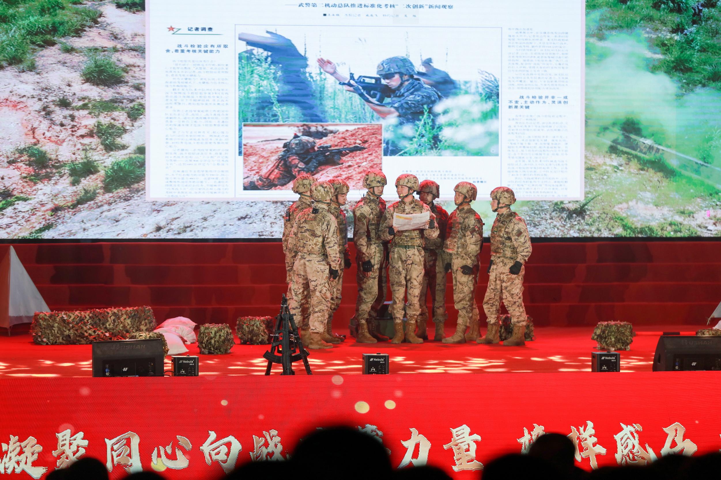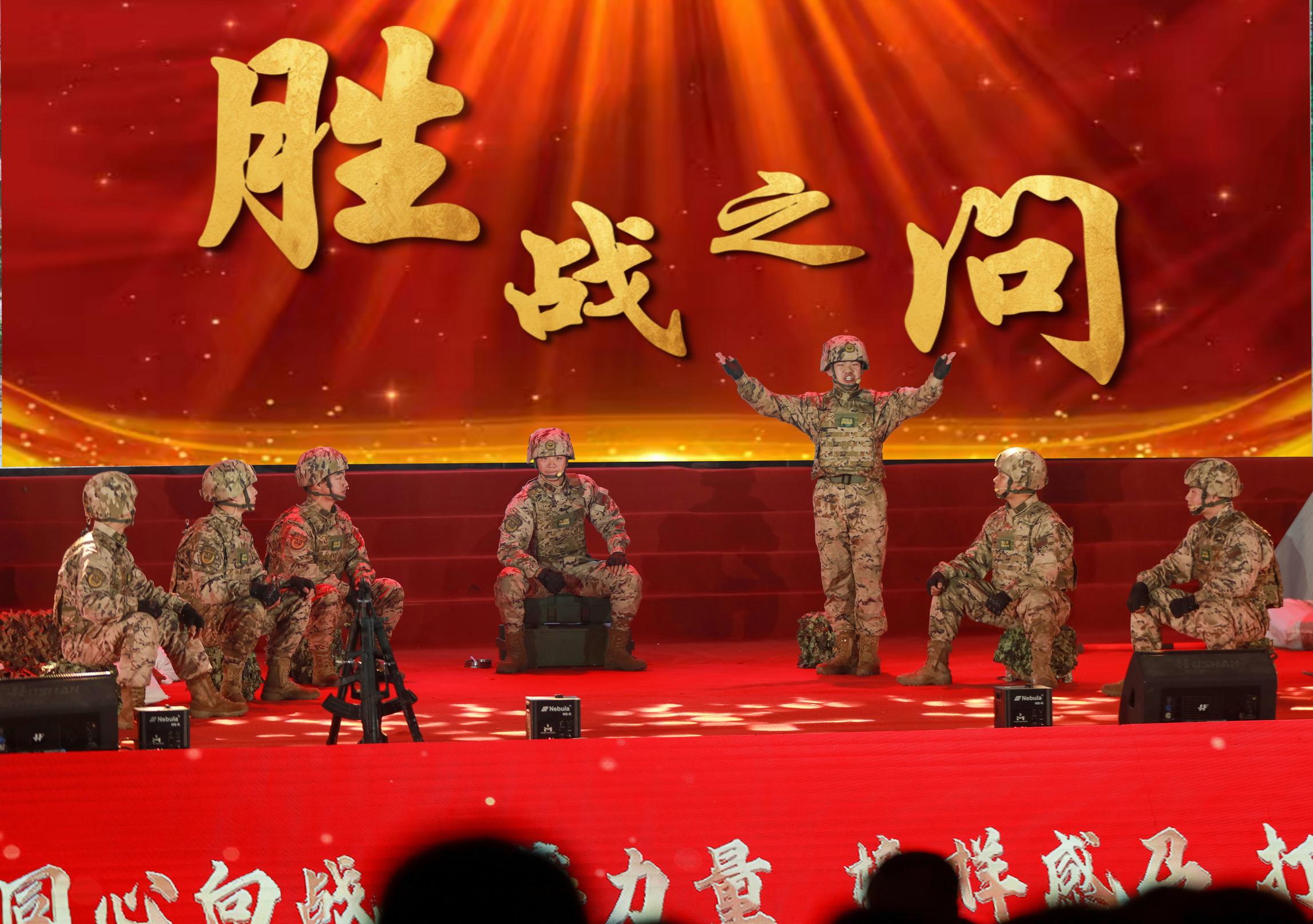颁奖舞台上,各类文艺节目穿插其间,不断烘托氛围。歌舞表演《战斗宣言》中,官兵舞步激情四射,彰显青春律动;诗朗诵《擎旗铸魂向攻坚》、快板《竹韵铿锵颂典型》气势磅礴、振奋人心;情景剧《胜战之问》《跨越时空的对话》聚焦支队年度大项任务和红色传统,发人深思……整场晚会精彩纷呈,不时引发现场热烈掌声。