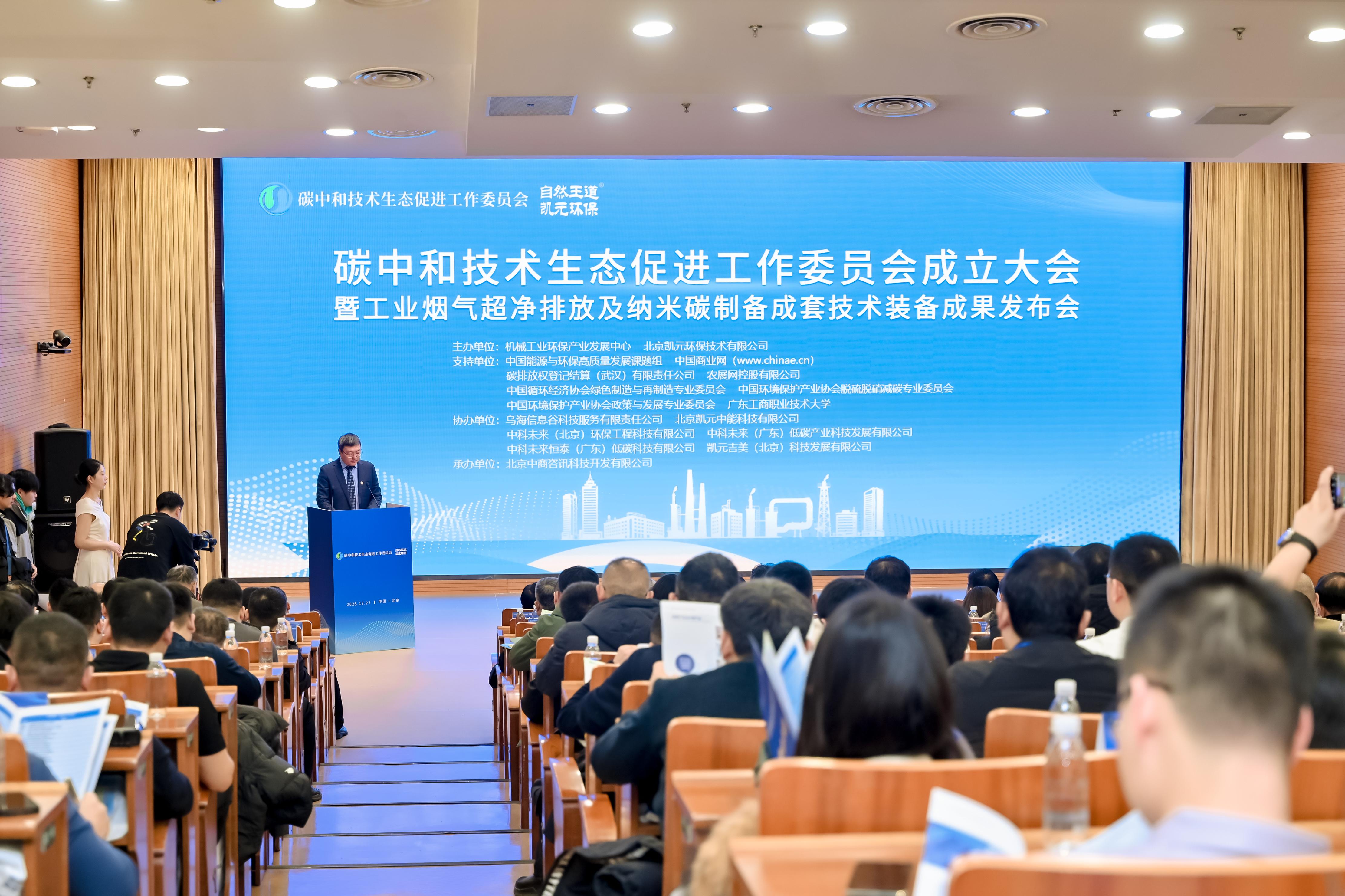 12月27日,由机械工业环保产业发展中心、北京凯元环保技术有限公司联合主办的碳中和技术生态促进工作委员会成立大会暨工业烟气超净排放及纳米碳制备成套技术装备发布会在北京召开。