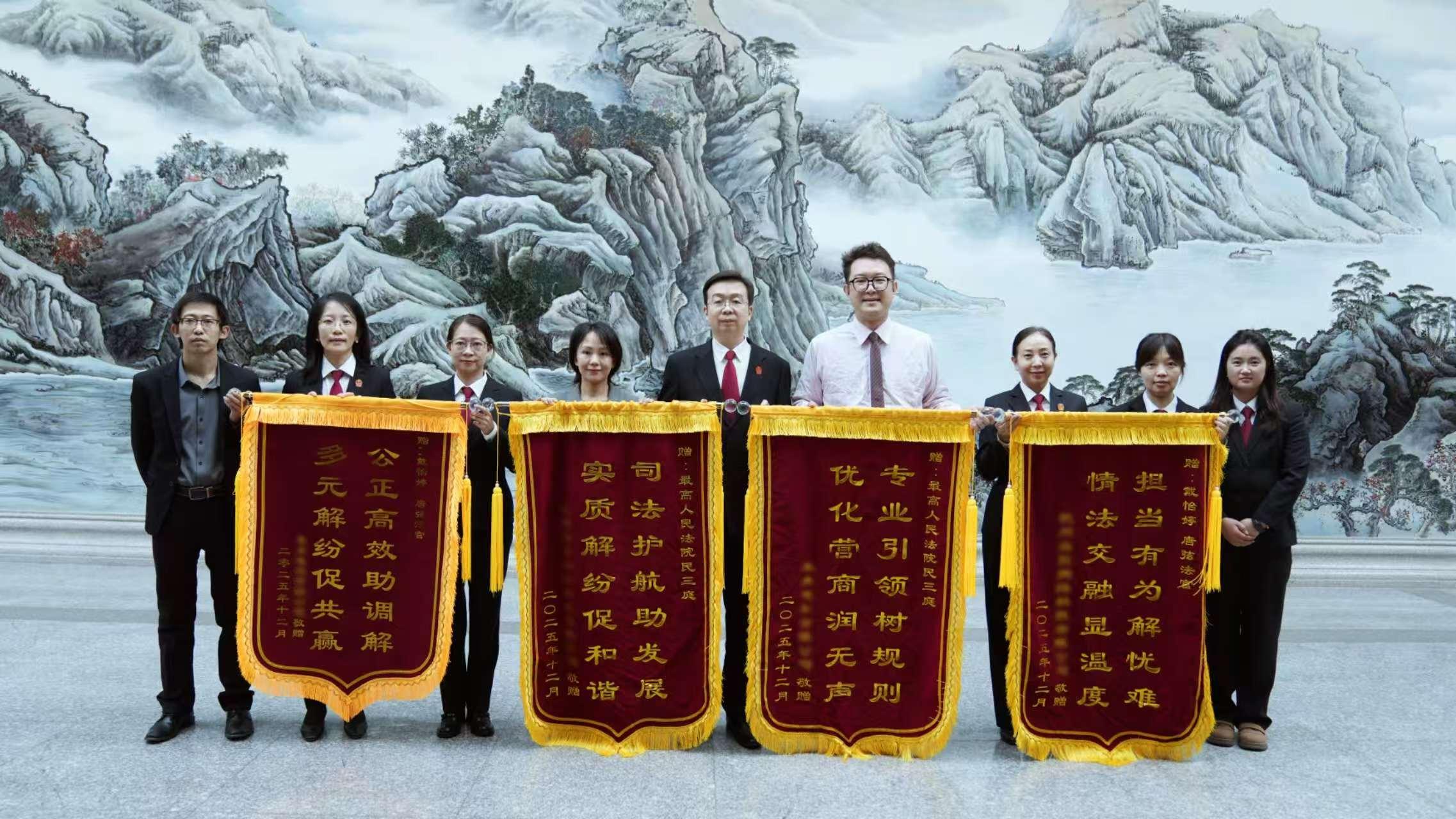 最高法民三庭通过创新调解模式,促成某平台公司与某电视台下属电视公司达成一揽子协议,不仅终结了93起在诉案件,更让4000余起潜在纠纷息诉,帮助民营企业绝境逢生,为新业态规范发展筑牢司法保障。