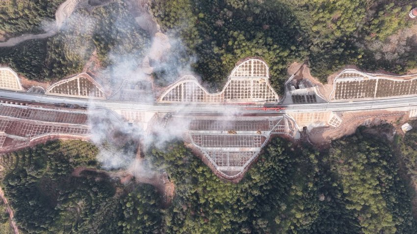 作为典型的山区铁路,瑞梅铁路江西段桥隧比超73.86%,需穿越赣南断裂带、溶洞群等复杂地质区域,沿线广泛分布稀土矿采空区、人为坑洞及危岩碎石,施工安全风险高、组织难度大,建设面临诸多挑战。此前,施工团队已成功攻克多项技术难关——全线最长桥梁绵水特大桥完成架梁、重点控制性工程华星村隧道实现贯通,为铺轨工作顺利开展奠定了基础。