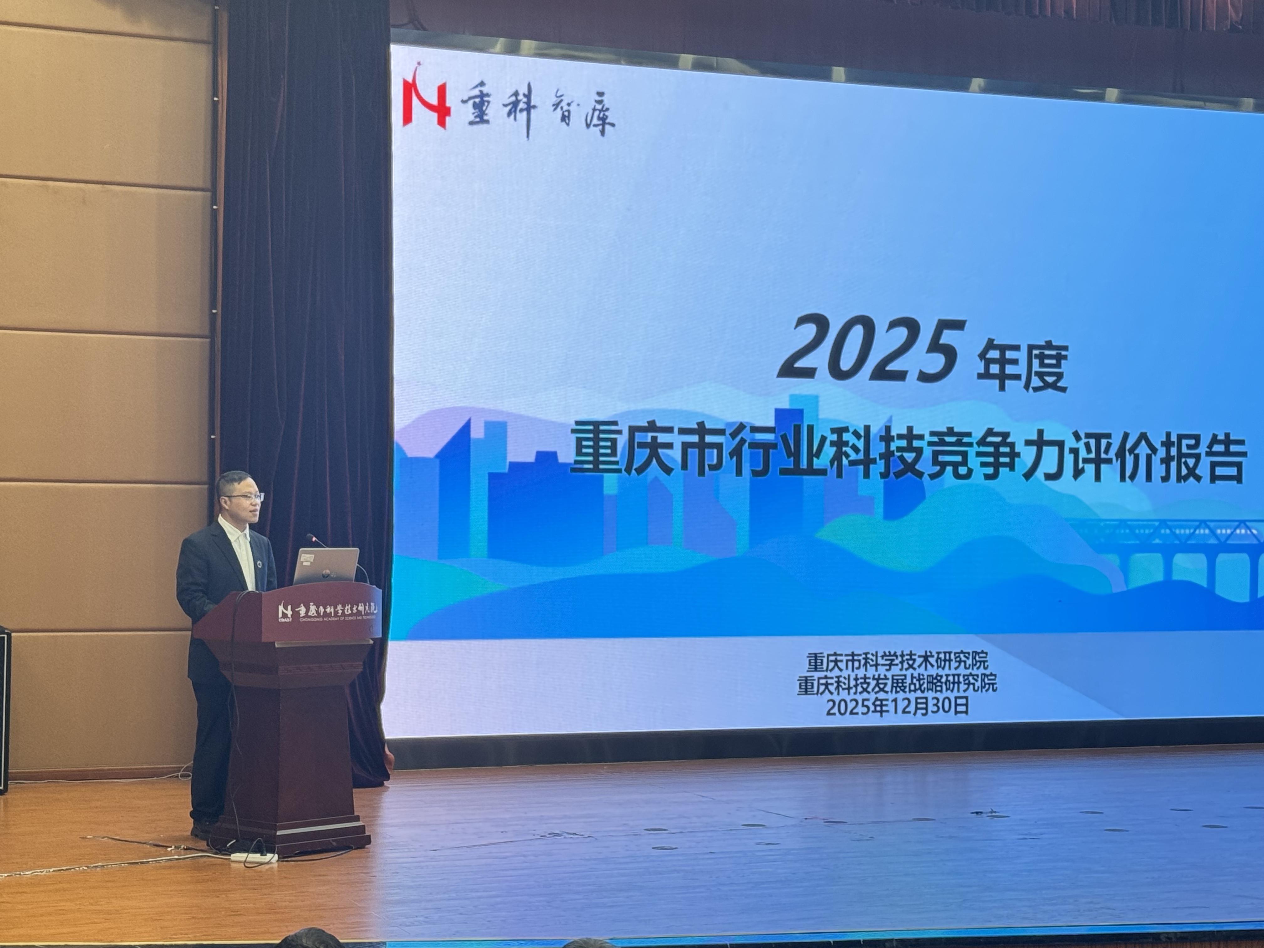 12月30日,2025年度重庆市区域与行业科技竞争力暨成渝地区双城经济圈协同创新指数成果发布会在重庆市科学技术研究院举行。现场发布了《2025年度重庆区县科技竞争力评价报告》(以下简称《区县报告》)《2025年度重庆行业科技竞争力评价报告》(以下简称《行业报告》)《2025成渝地区双城经济圈协同创新指数》(以下简称《成渝指数》)3项智库成果,为成渝地区相关部门及区县科技和行业主管部门制定科技创新、产业创新发展政策提供参考。