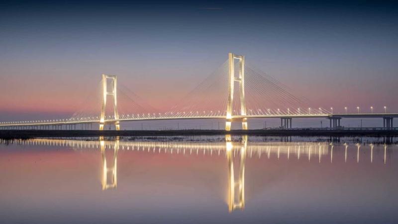 该大桥主塔,在国内首次采用无纵筋钢混组合结构,将上下游塔柱各分为36个节段,通过装配化工艺逐节安装,在提升效率的同时,还实现桥梁制造与建造的异地化,减轻桥梁结构自重与下部基础规模,缩小黄河河床开挖范围,大幅降低桥梁建设对生态环境的影响,最大限度保护黄河湿地。