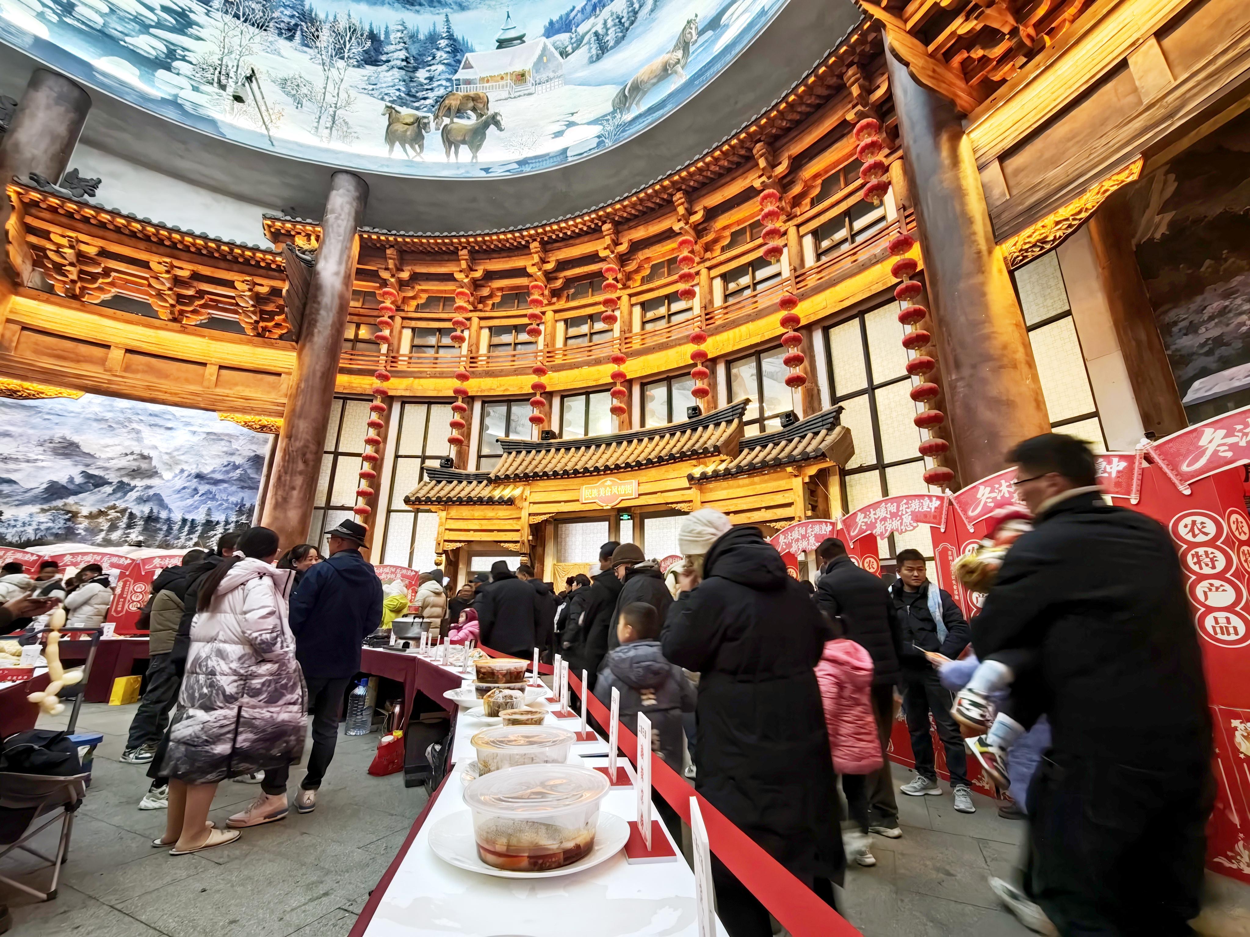 同时,现场开展“百村百味 农品寄福”特色美食展销活动。主办方组织全区100个行政村参与布设“百村百味”年夜饭品尝区,集中呈现乡土风味浓郁、各具特色的年夜菜品。