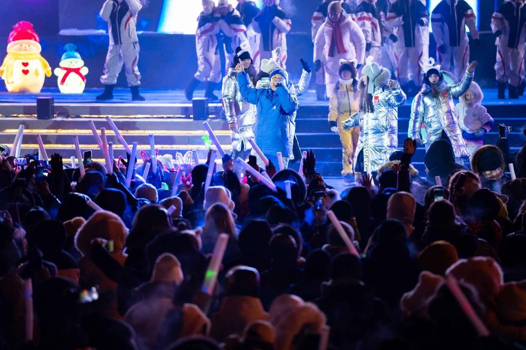 舞台上,摇滚版《大东北是我的家乡》响彻夜空,中俄青年伴着音乐摇摆合唱,尽管语言不同,声浪却浑然一体。舞台下,这片自发形成的巨型“舞池”中央,不同国籍、不同年龄的人们踩着相同节拍,挥舞着同样的荧光棒;当《喀秋莎》的旋律响起,现场瞬间汇成一片跃动的海洋,荧光棒随节奏划出整齐光弧,欢呼与歌声交织升腾。