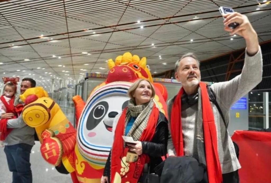 走出舱门,憨态可掬的“北京礼物”马墩墩人偶吸引了游客们的目光,大家争相上前合影留念。德国游客Moriz难掩兴奋,他表示曾在北京生活学习过,对这座城市满怀感情,特意搭乘航班开启新年中国之行。北京市文化和旅游局为游客送上“来京大礼包”,礼包内含十大冬季冰雪旅游线路、入境游攻略、酒店手册及离境退税指南,还整合了多家企业的专项优惠,助力游客全方位体验北京之旅。