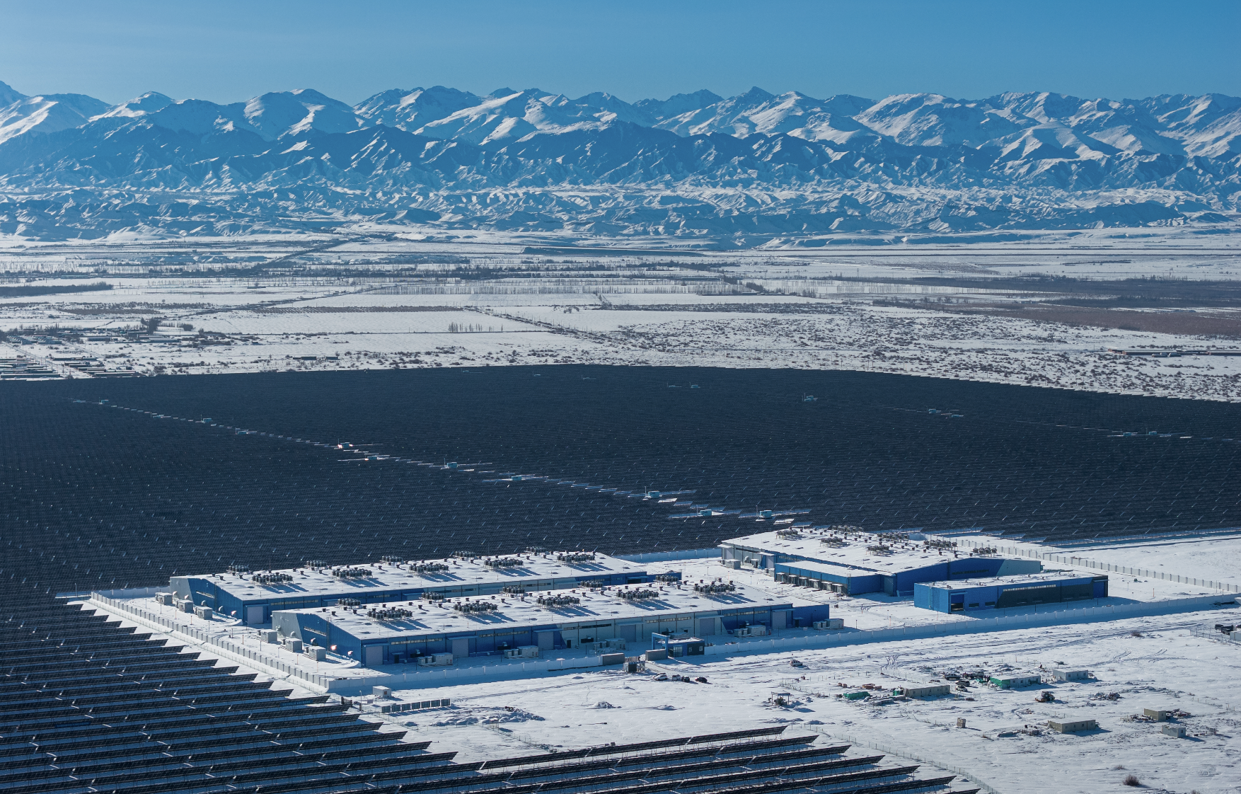 电站地处的戈壁滩常出现零下30至零上40摄氏度的极端气温,为确保电站在极端温差环境中稳定运行,三峡集团首创彩钢房全室内布置建设方案,有效提升运行维护环境水平。