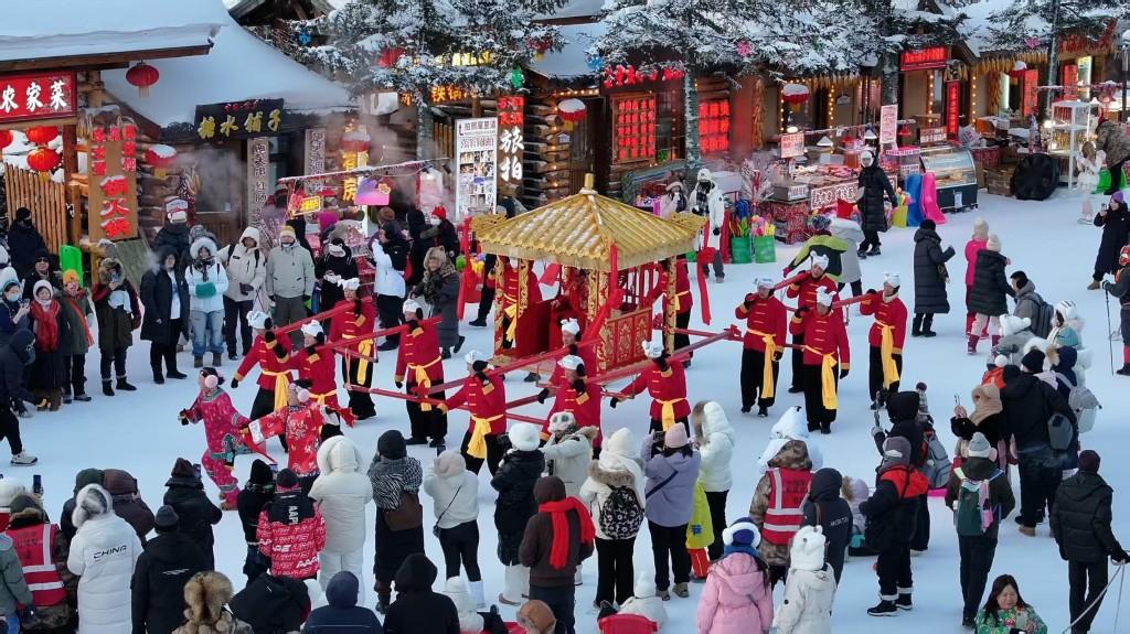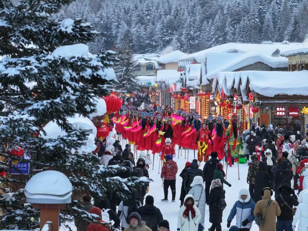 元旦假期,位于黑龙江省牡丹江市的雪乡化身银装素裹的童话世界。来自全国各地的游客踏雪而至,赏雪、玩雪、品民俗、享温情,持续升温的旅游热潮,让这座冬日乡村成为新年伊始最具人气的文旅目的地之一。元旦三天小长假,雪乡景区入园人数达53000余人次。