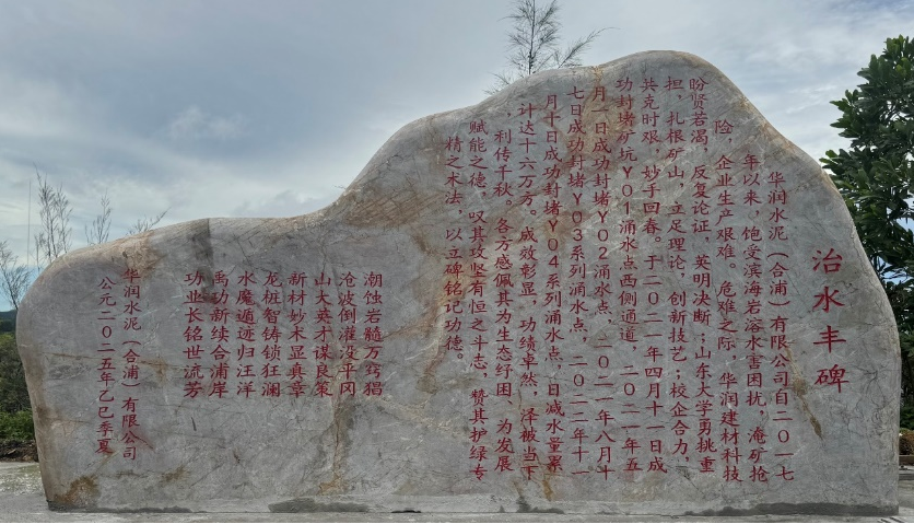 2025年,华润水泥(合浦)有限公司为山东大学岩土团队立下了第三块治水丰碑,碑文中“禹功新续合浦岸,山大英才谋良策”这两句,见证了这段风雨同舟的岁月。
