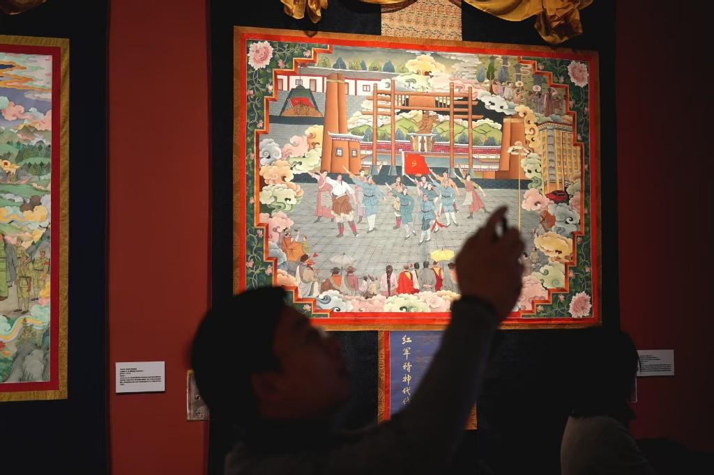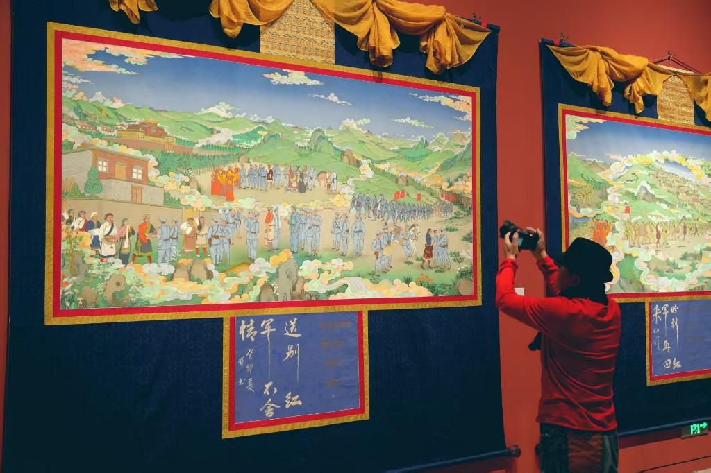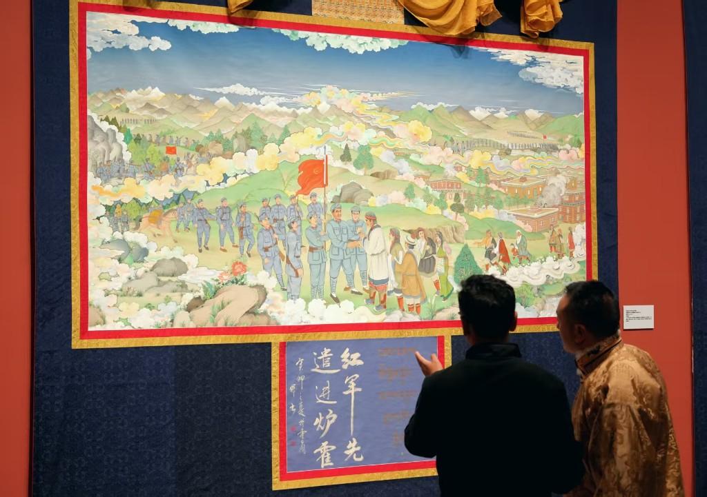 近日,由中国非物质文化遗产馆、中共甘孜藏族自治州委、甘孜藏族自治州人民政府主办的“镌刻在唐卡中的红色记忆——郎卡杰唐卡创新艺术展”在中国工艺美术馆·中国非物质文化遗产馆举行。